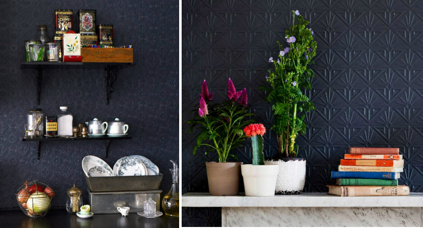 These wallpapers open up a wide range of creative possibilities. In the process of staining, you can use any available means and materials to achieve the desired effect, for example, stencils or patterned rollers... They can be made independently or purchased ready-made at any of the hardware stores.