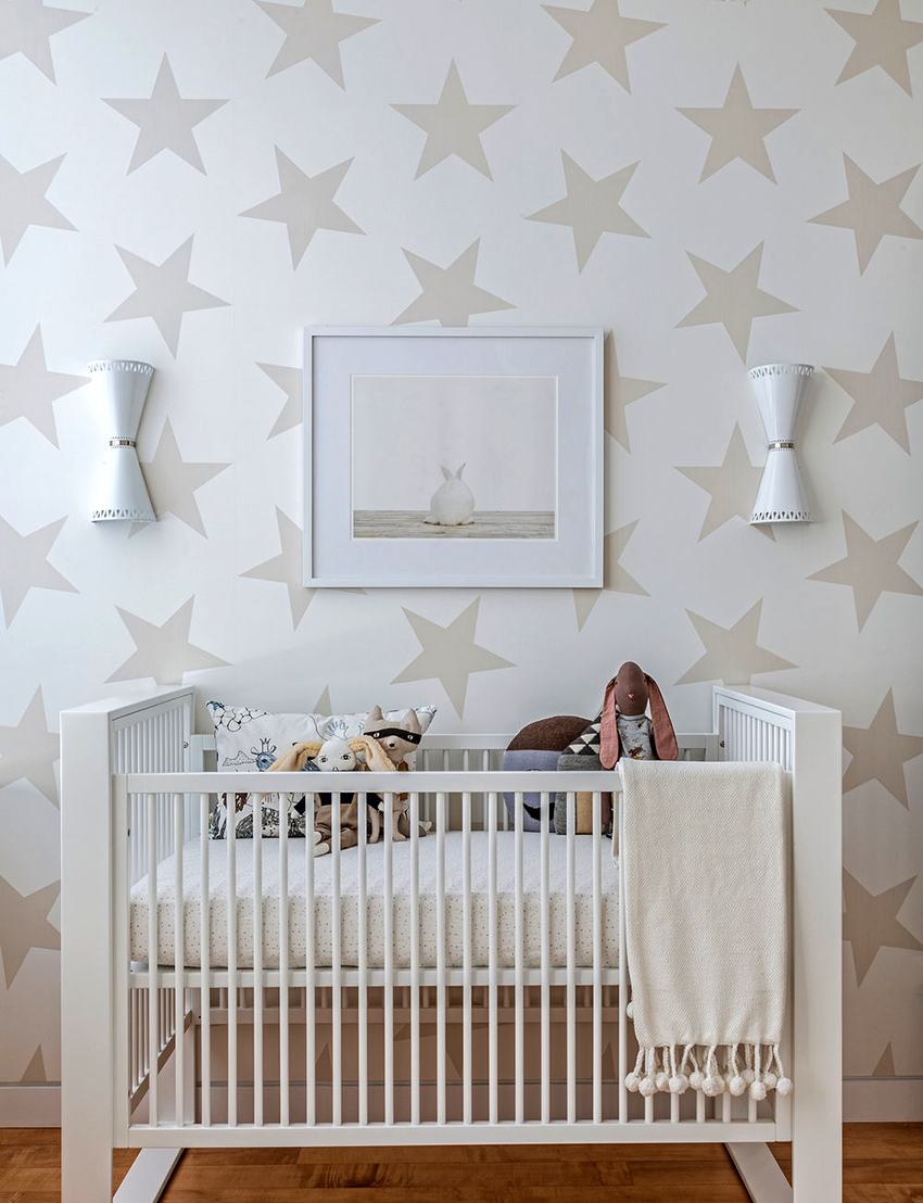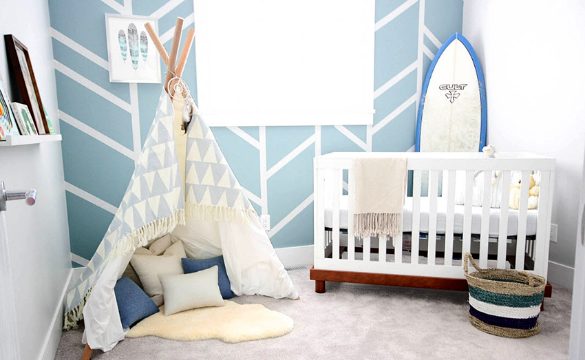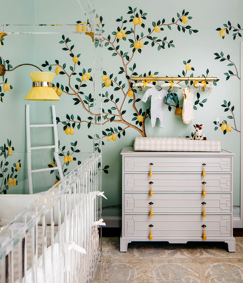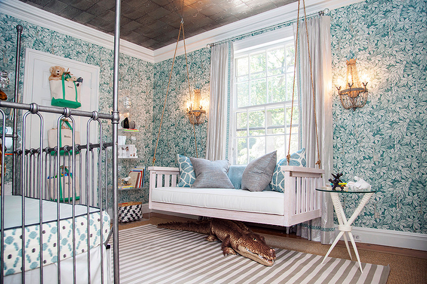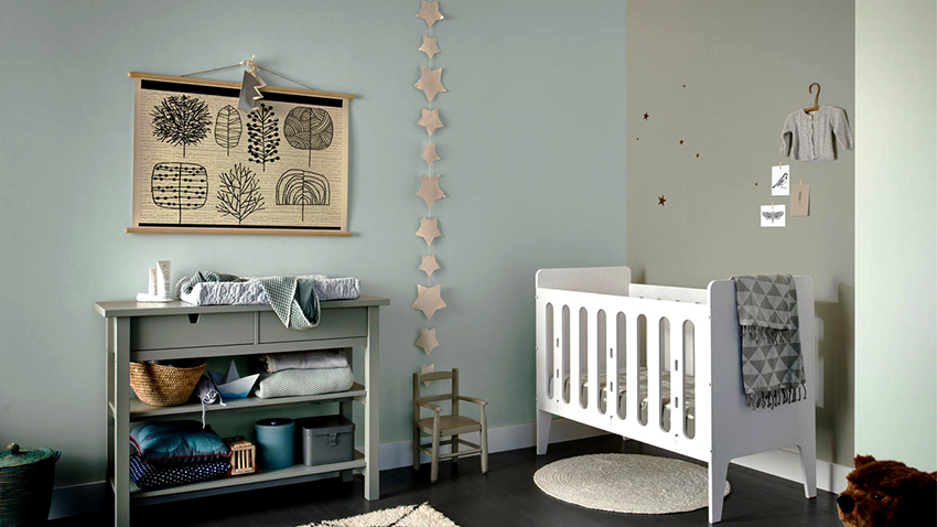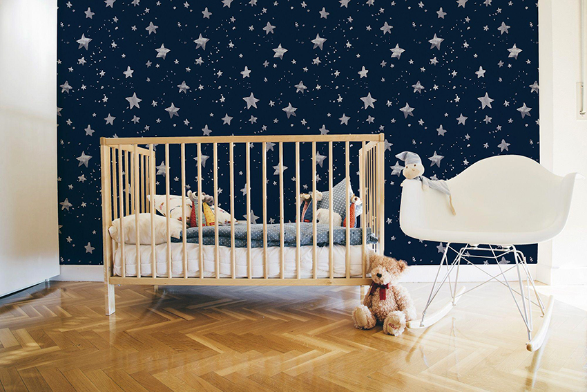 A good option for a nursery is glass wallpaper, as they do not create an environment for the development of mold and mildew