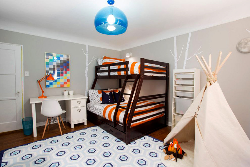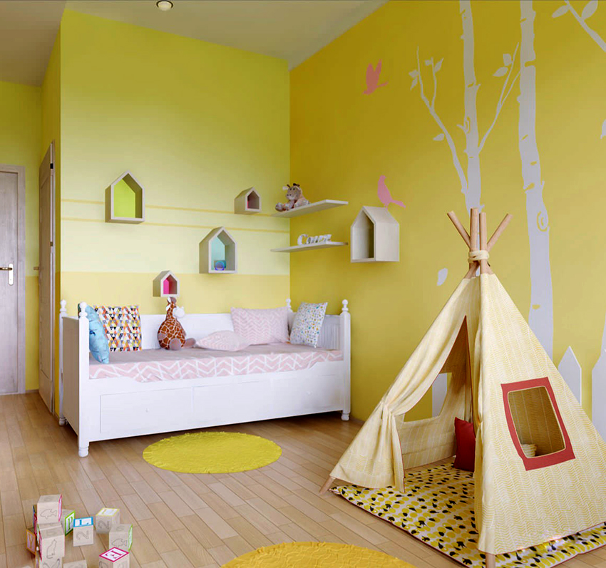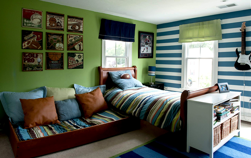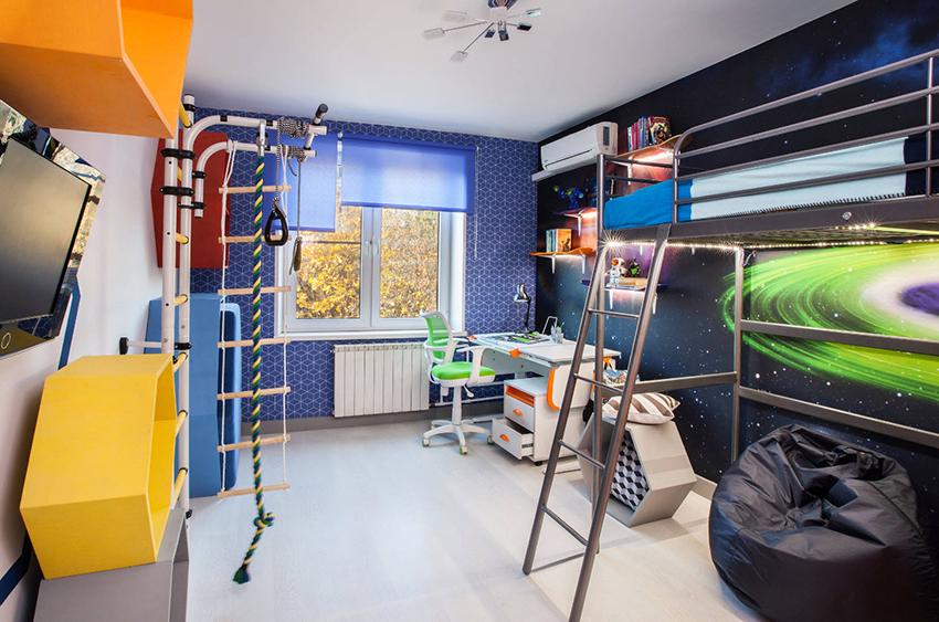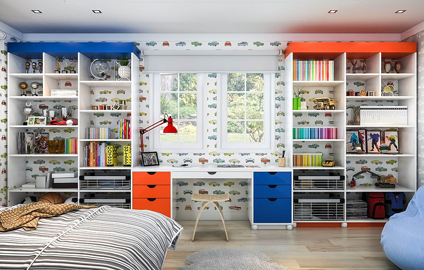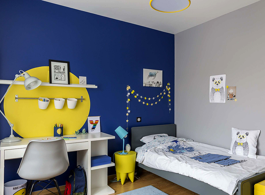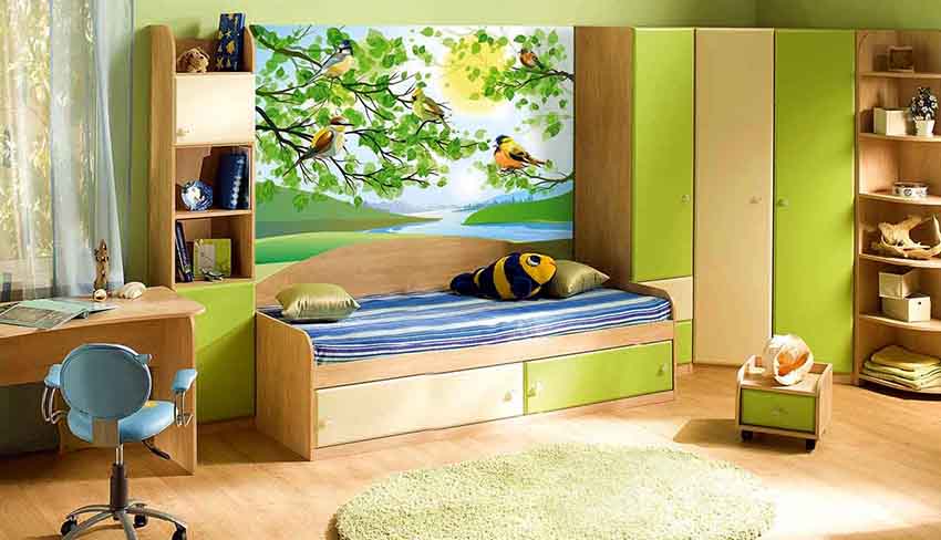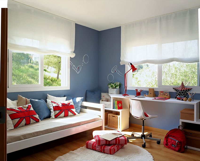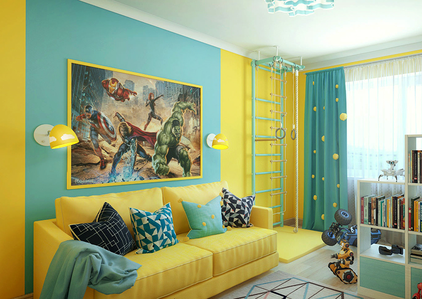 The color palette affects the psychological state of the child. According to psychologists, the yellow color has the most beneficial effect, which awakens the desire for study, self-realization, new discoveries and achievements, and brings cheerfulness to the room. The color green calms and stimulates the desire to develop.