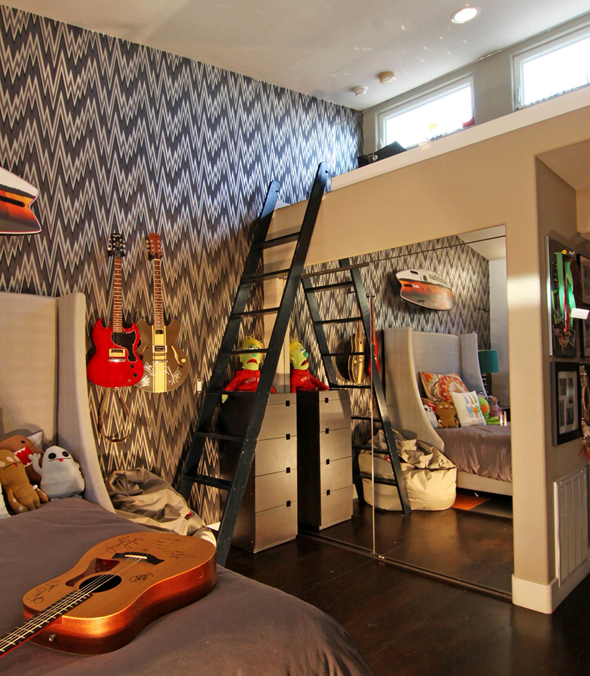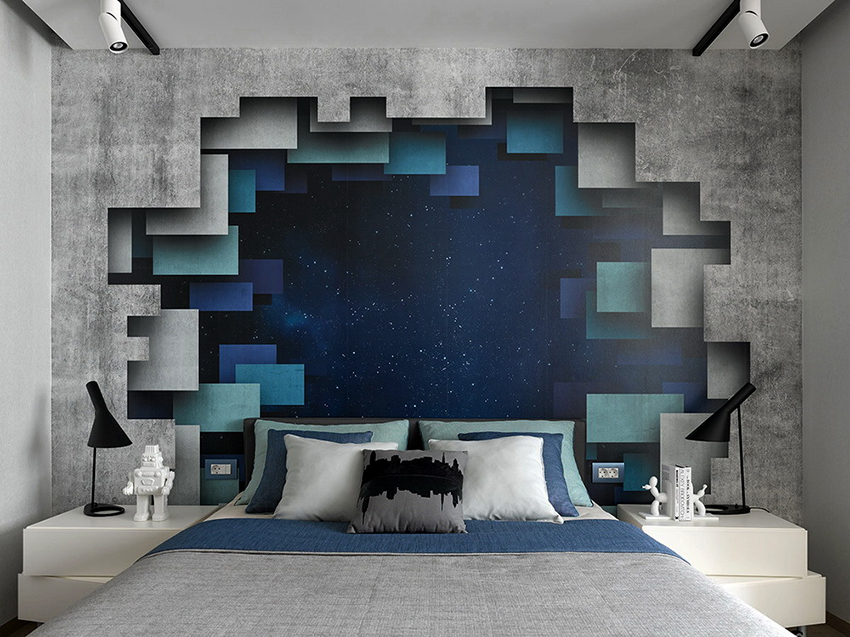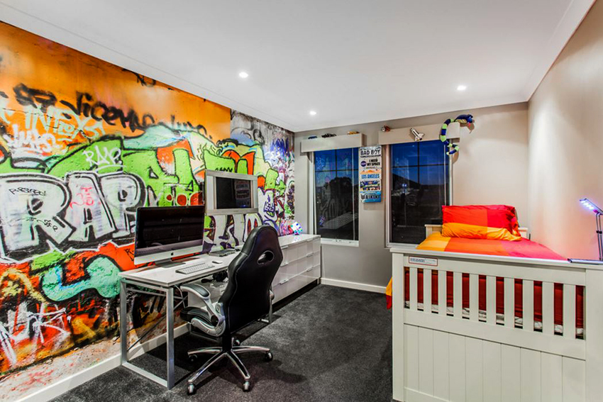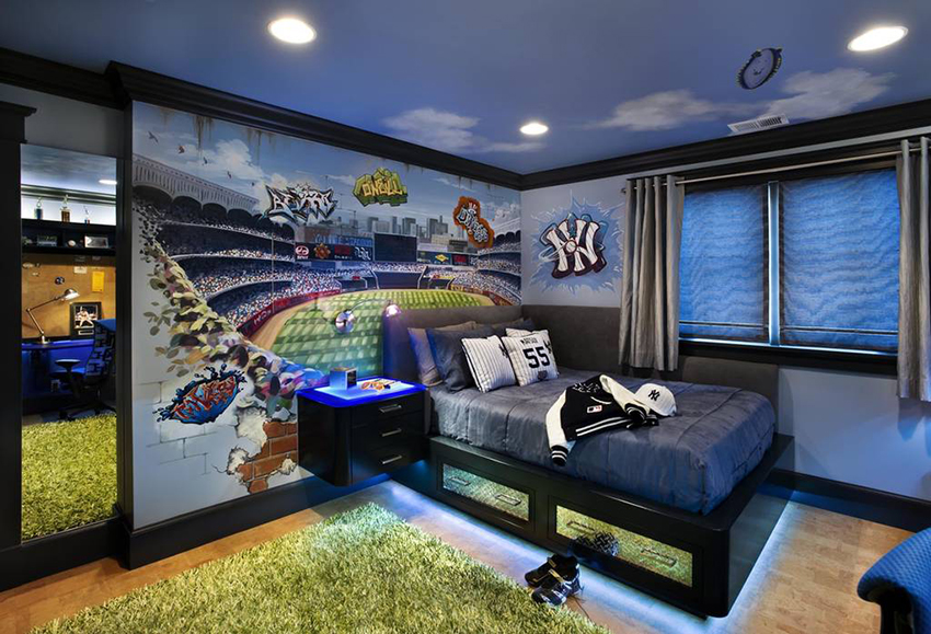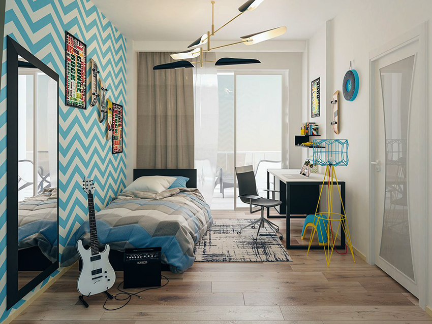 Wallpaper for a teenage room for a boy is selected with drawings that correspond to the child's hobbies. Typical illustrations can be used here on one of the topics, such as sports, technology, music, cars, graffiti or urban compositions.