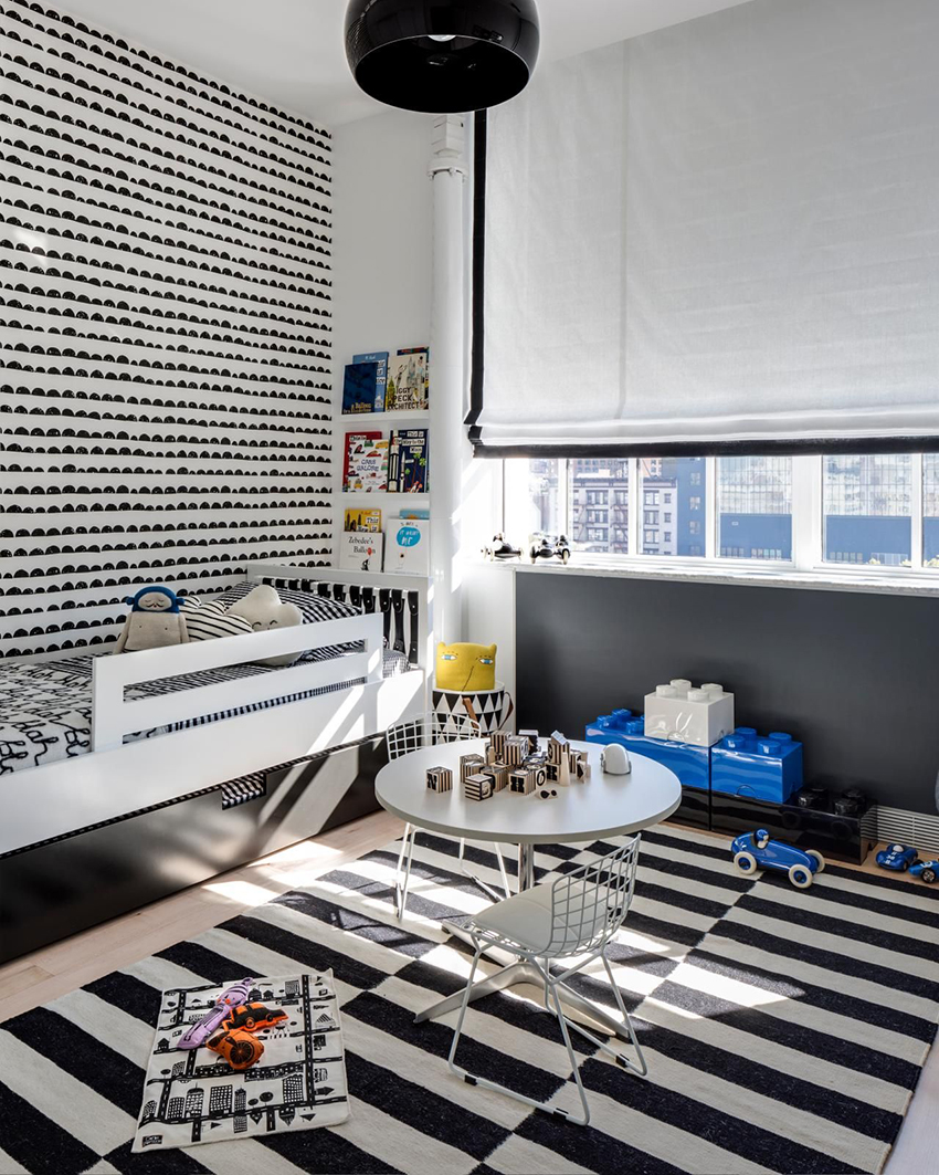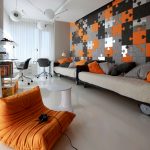 Geometric themes are considered universal, which are suitable for a child of any age and gender. Geometric ornaments can be presented in any color scheme, which will create a certain atmosphere in the room. Squares and diamonds are a symbol of orderliness. Straight lines represent activity and dynamism. Wallpaper with polka dots will add dreaminess, romance and lightness to the interior.