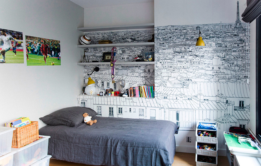 Based on the child's hobby, you can pick up wallpapers with the image of musical instruments, famous soloists, groups, actors, film frames, famous athletes, sports paraphernalia. If a girl is fond of drawing, she will like unusual stylistic illustrations, graphics, wallpaper with her own drawings.