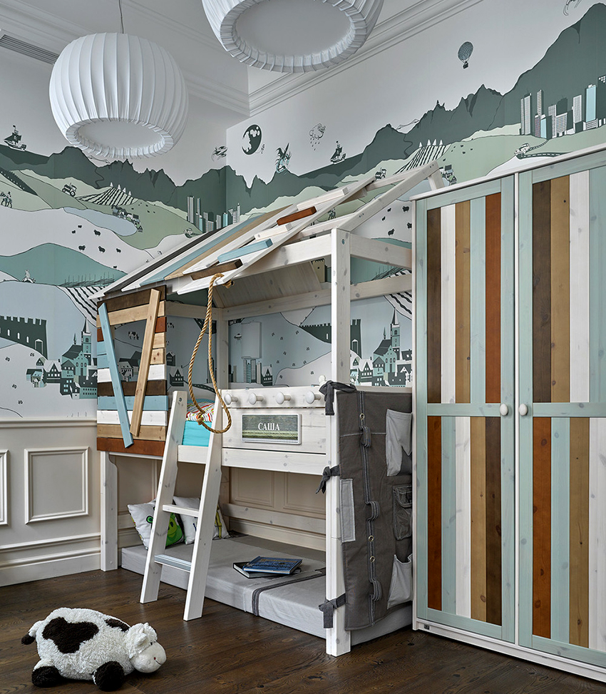 A 5-6 year old child has a sharp increase in activity. During this period, it is important to develop the baby's creative impulses, creating comfortable conditions for his self-realization. A good solution is to paste over the upper part of the wall with decorative varieties of finishing materials, and it is better to decorate the lower part with plain paper wallpaper that can be used for drawing.