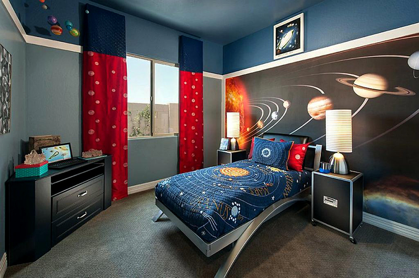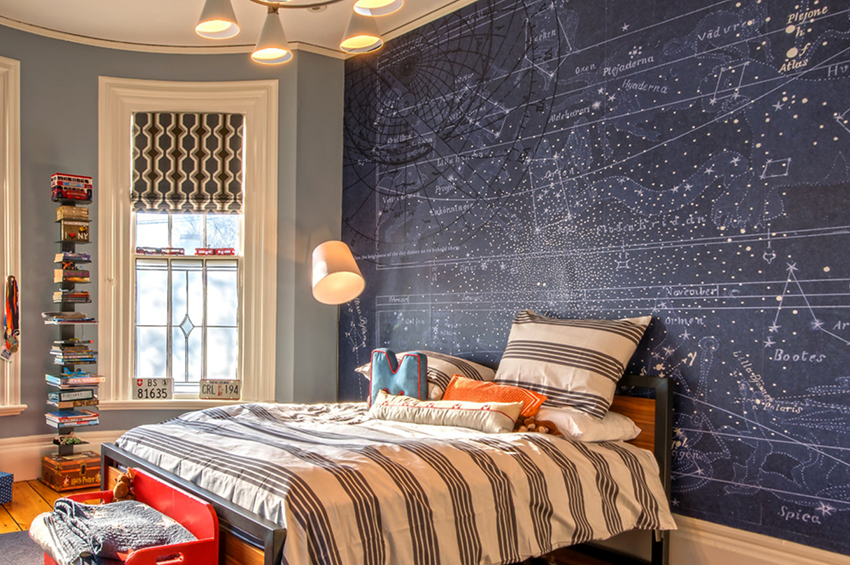 The space theme is no less relevant.Wallpaper collections contain realistic or drawn scenes with constellations, planets, spaceships. Wallpaper with stars is a versatile option that will suit both a boy and a girl. The boys will also be delighted with the products depicting cars and sports items.