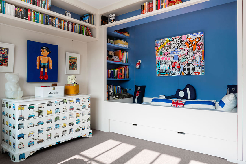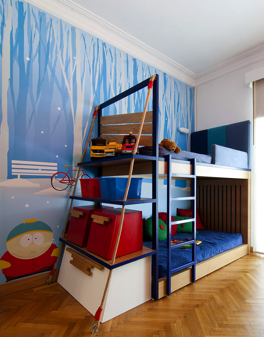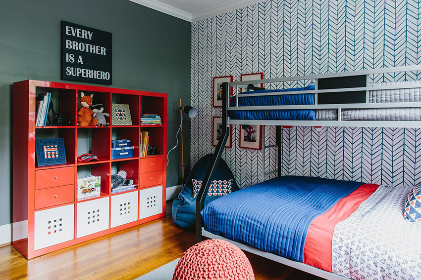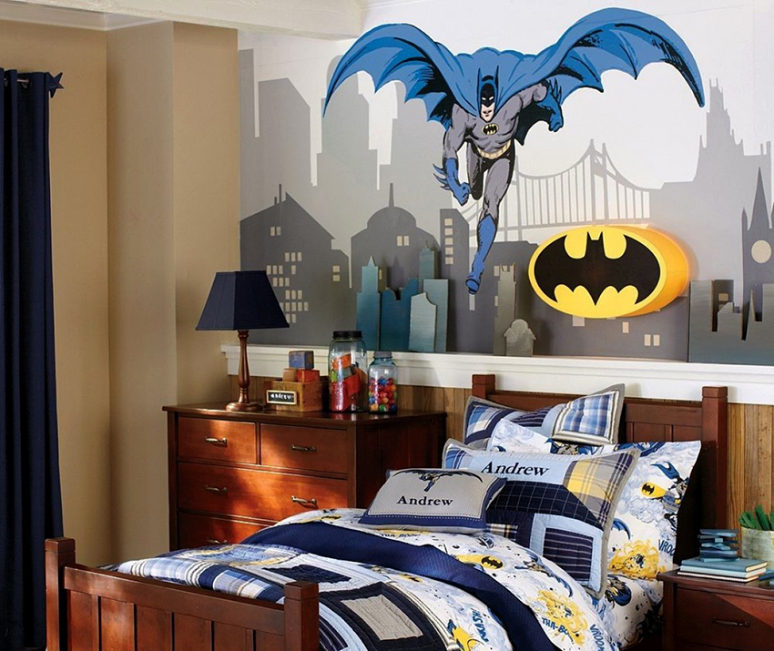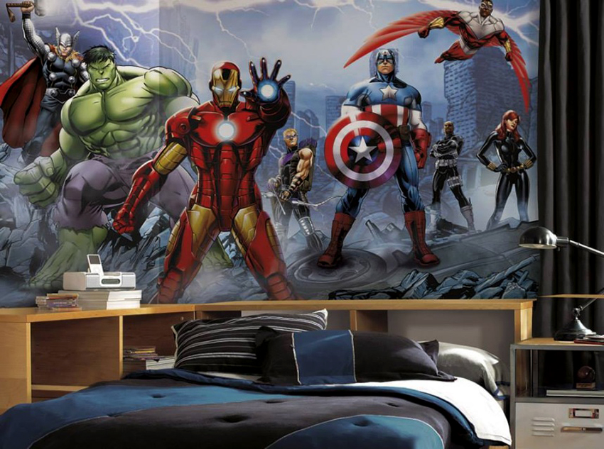 Every boy has a favorite superhero. In the room, you can stick a photo wallpaper with his image. Such a decision can push the boy to new beginnings or affect the formation of some character traits. Popular are wall murals in the nursery for a boy with Spider-Man, Batman, Superman. Bright canvases should overlap with decorative elements of the interior.
