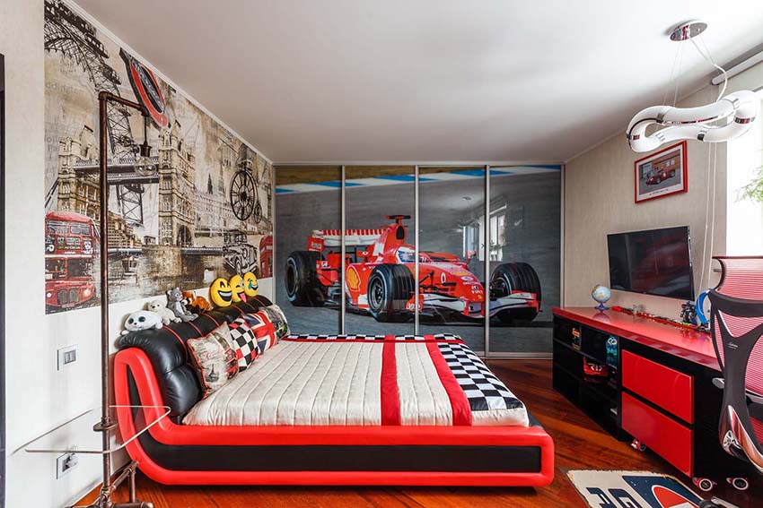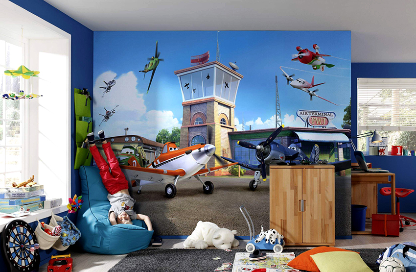 For a child over 3 years old, you can choose rich and cheerful canvases. Boys love cars the most. A suitable option would be a photo wallpaper with images of characters from the cartoon "Cars". You can complement the overall concept of the room with themed furniture. It can be a bed in the form of a car, ship or plane.
