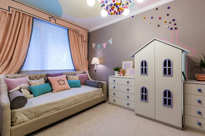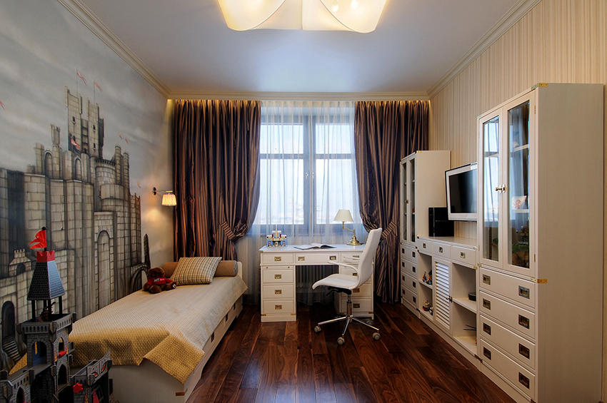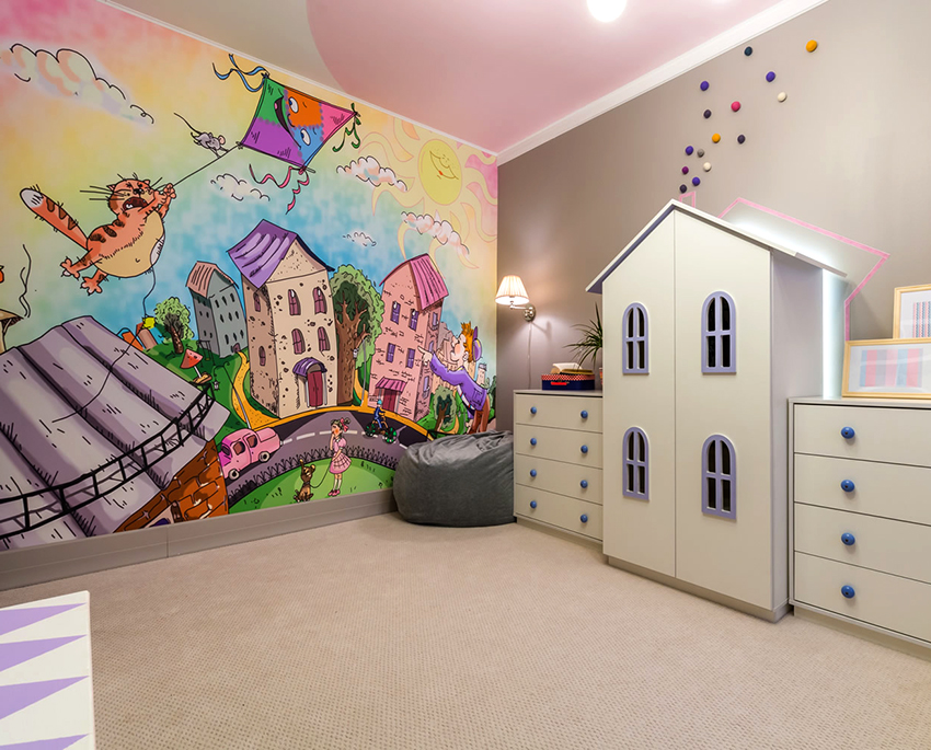 A child's room over 9 years old should be designed based on gender and personal preference. During this period, children become very conservative and will not allow anything to change on their territory in the next few years. This should be taken into account when choosing a wall decoration for a children's room. The drawing should look aesthetically pleasing and stylish for some time.