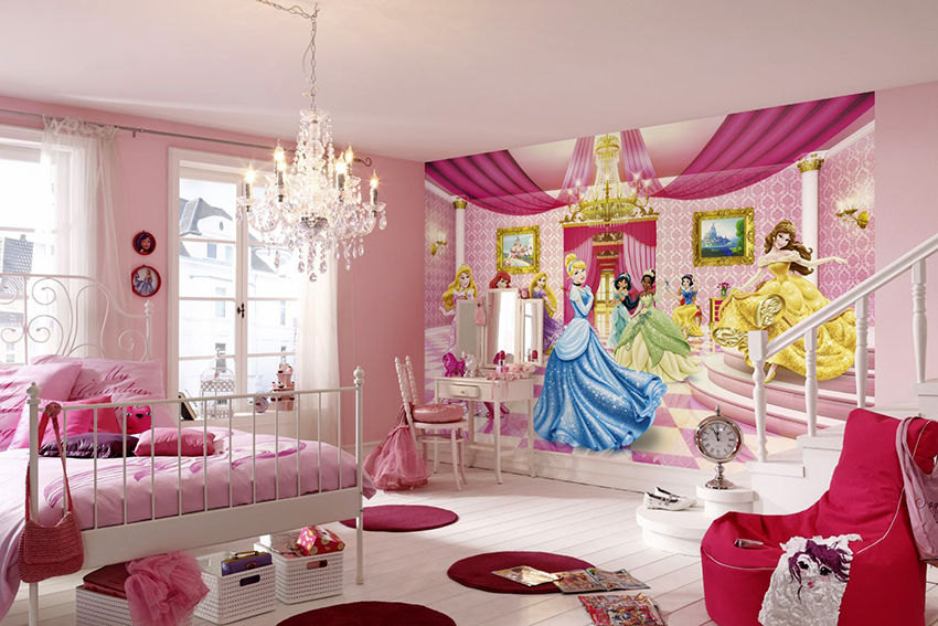 For girls over 5 years old, photo wallpapers with portraits of cartoon or fairy-tale characters are recommended. These can be Cinderella, The Little Mermaid, Thumbelina, Snow White, Barbie dolls, Winx fairies and other characters.