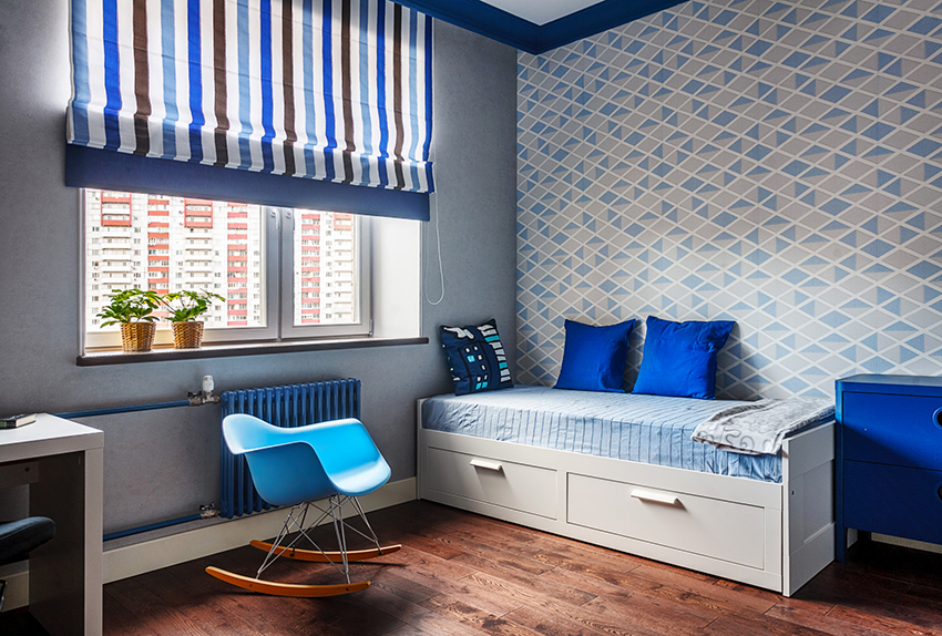 Vinyl wallpaper is composed of paper and non-woven material. Despite its beautiful appearance, dense, durable surface, this material is not recommended for children's rooms. The absence of pores prevents the walls from "breathing". This can cause the onset of fungal mold on the walls with poor ventilation and high humidity in the room. In addition, vinyl wallpaper contains substances that are harmful to health, which subsequently pollute the air in the room. However, with frequent cleaning and good ventilation, they are suitable for a teenager's room.
