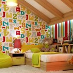 A popular and original idea of children's wallpaper (photos clearly show this) are products with a learning effect, which are represented by various collections with mathematical formulas or alphabet. This indoor backdrop contributes to the positive dynamics of the child's development, improving his mental capacity and developing creativity.