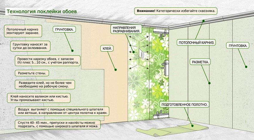 Important! When gluing wallpaper and until it dries completely, it is necessary to completely eliminate drafts by closing doors and windows.
