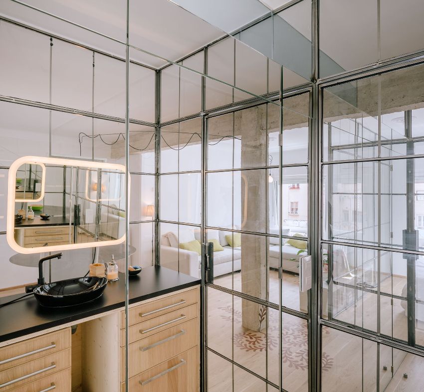 Glass partitions are easy to install, and when you move they can be easily disassembled and mounted in a new place