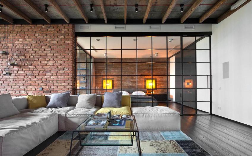 Bare brick walls give the room a gloomy and uninhabited look. However, today many people choose just such a design, because it is laconic, non-standard and makes it easy to select accessories.