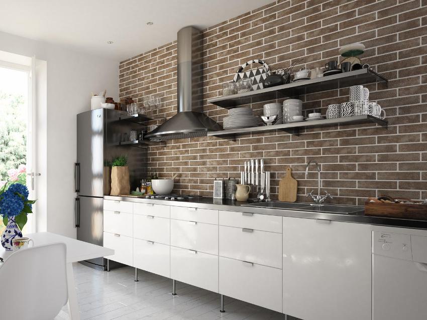 White glossy brick tiles are actively used for cladding a kitchen or bathroom.The smooth surface is well cleaned, does not absorb moisture and various dirt.