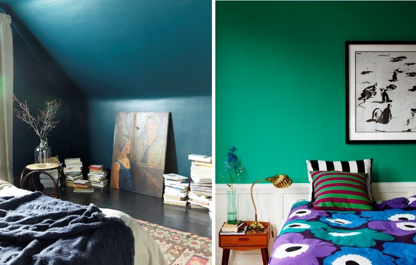 When it comes to the bedroom, wall painting is proving to be the hottest solution. After all, coloring is the most durable and harmless coating method. A correctly selected color combinations will help to set up the owners of the home for a good rest, or, on the contrary, for a more vigorous and easy awakening in the morning.