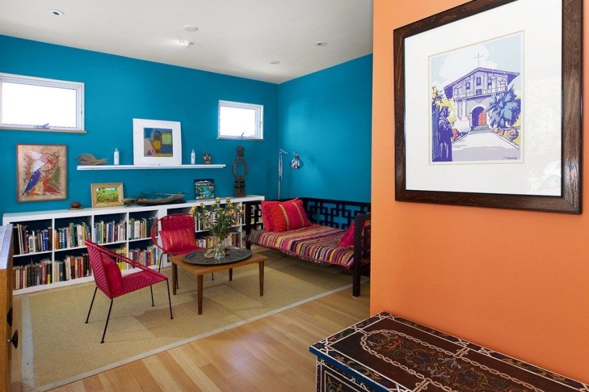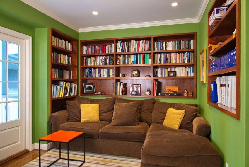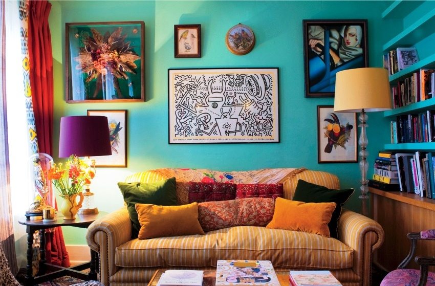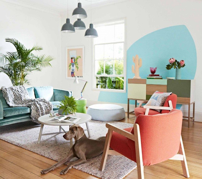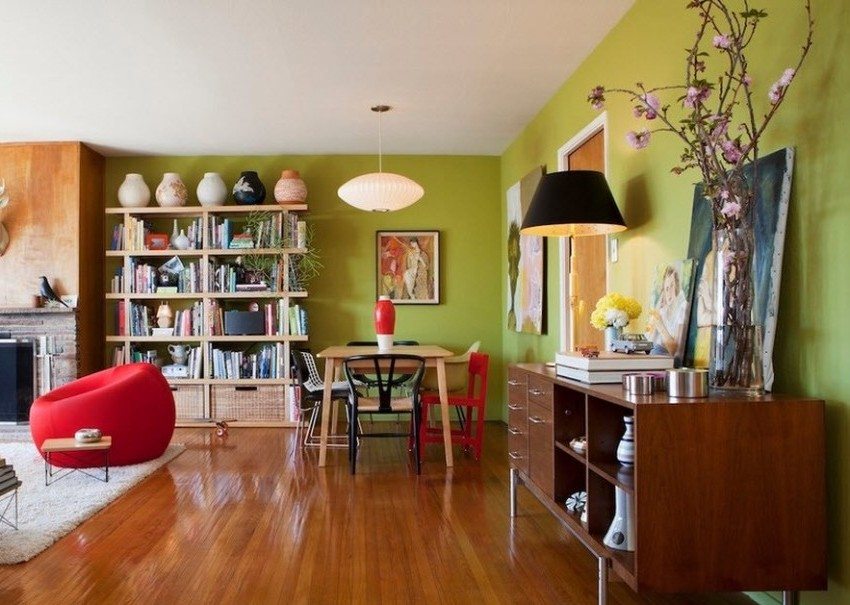 Living room - the most suitable place for "colorful" experiments. Absolutely any shade will look harmonious in this room, provided that it is successfully combined with furniture and general the style of the apartment generally.