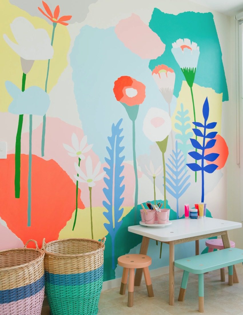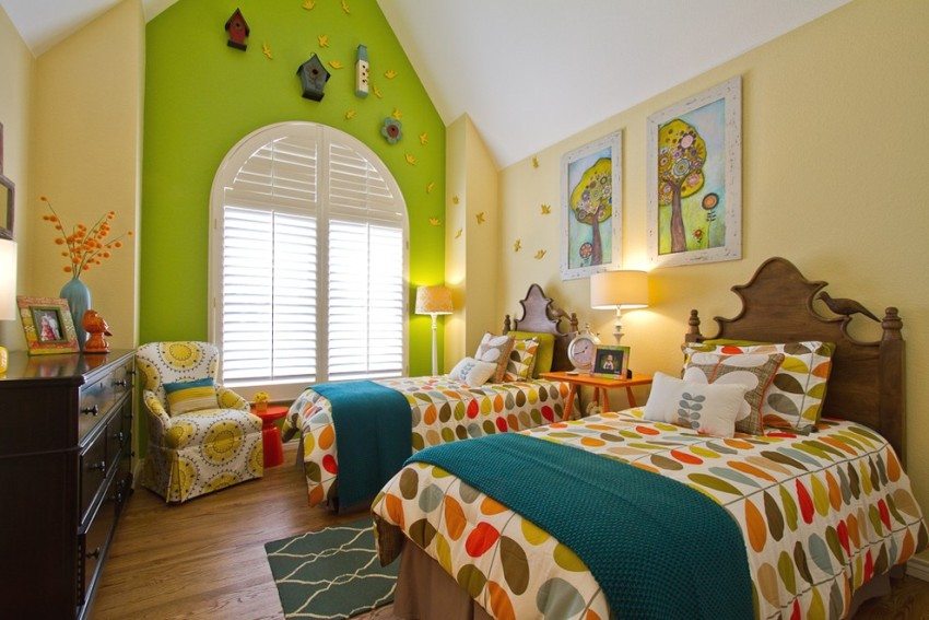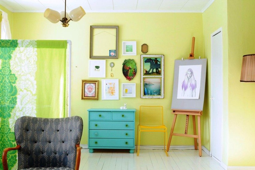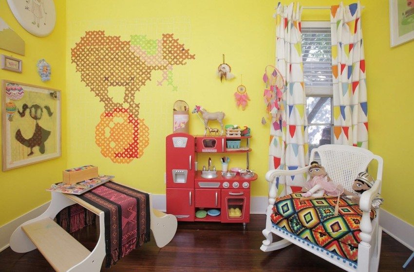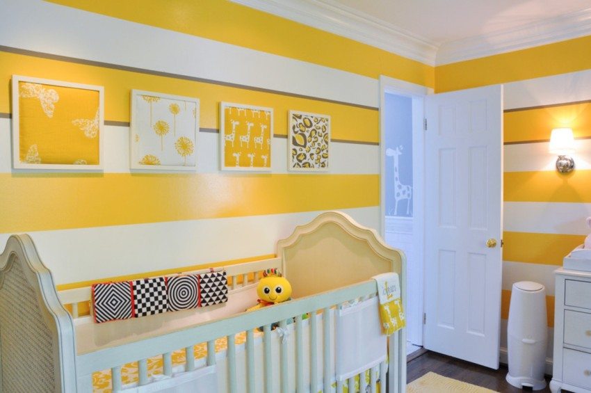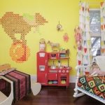 For decorating the walls of a children's room, rainbow colors are perfect - sunny yellow and orange, all shades of green, blue, pink and beige. Moreover, there are no restrictions on the number of simultaneously used colors in this room. In addition, the child will definitely want to choose and even try to apply paint on the wall.