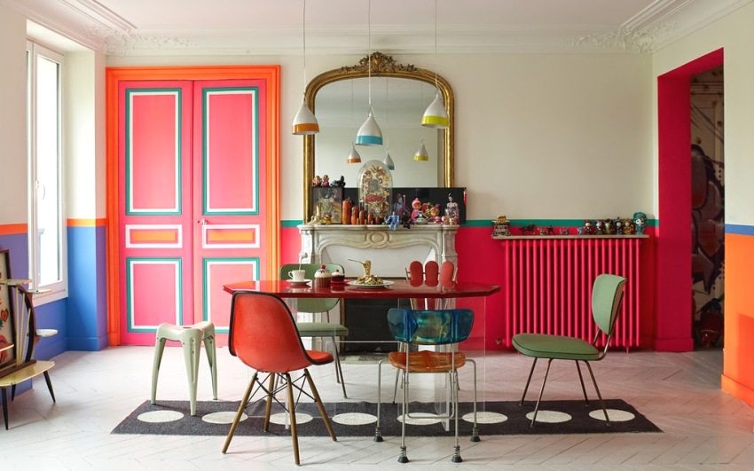 Now it is very fashionable to use the principle of "three colors", that is, to combine three colors when painting one room. The contrast of combinations plays an important role here. The brighter the neighborhood of colors, the smaller the room will seem. Therefore, be careful with the currently fashionable purple, terracotta, wine and plum shades.