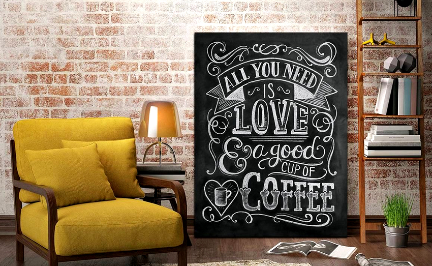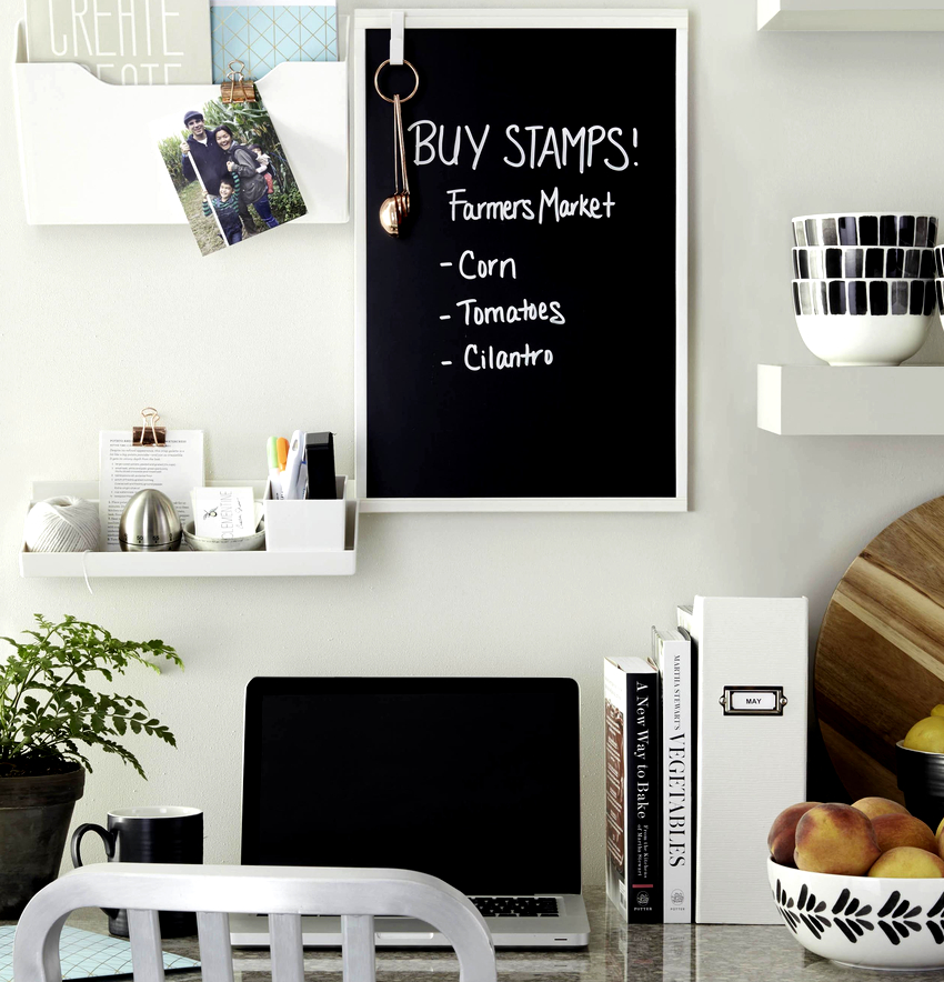 The board on the wall for notes should be in a conspicuous place, but at the same time not be the central element of the interior