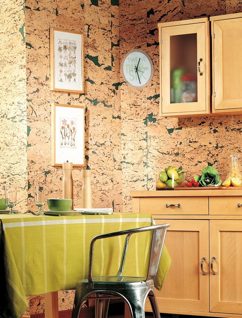 A wonderful effect can be achieved by gluing different shades of cork wallpaper in the form of a mosaic, a repeating pattern or a whole composition.