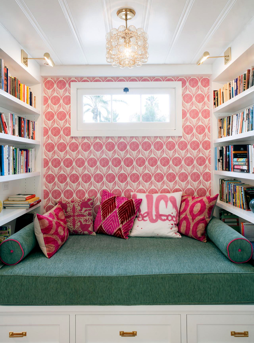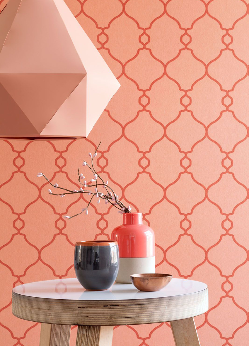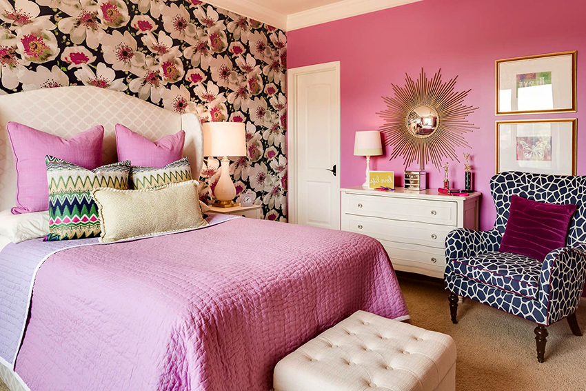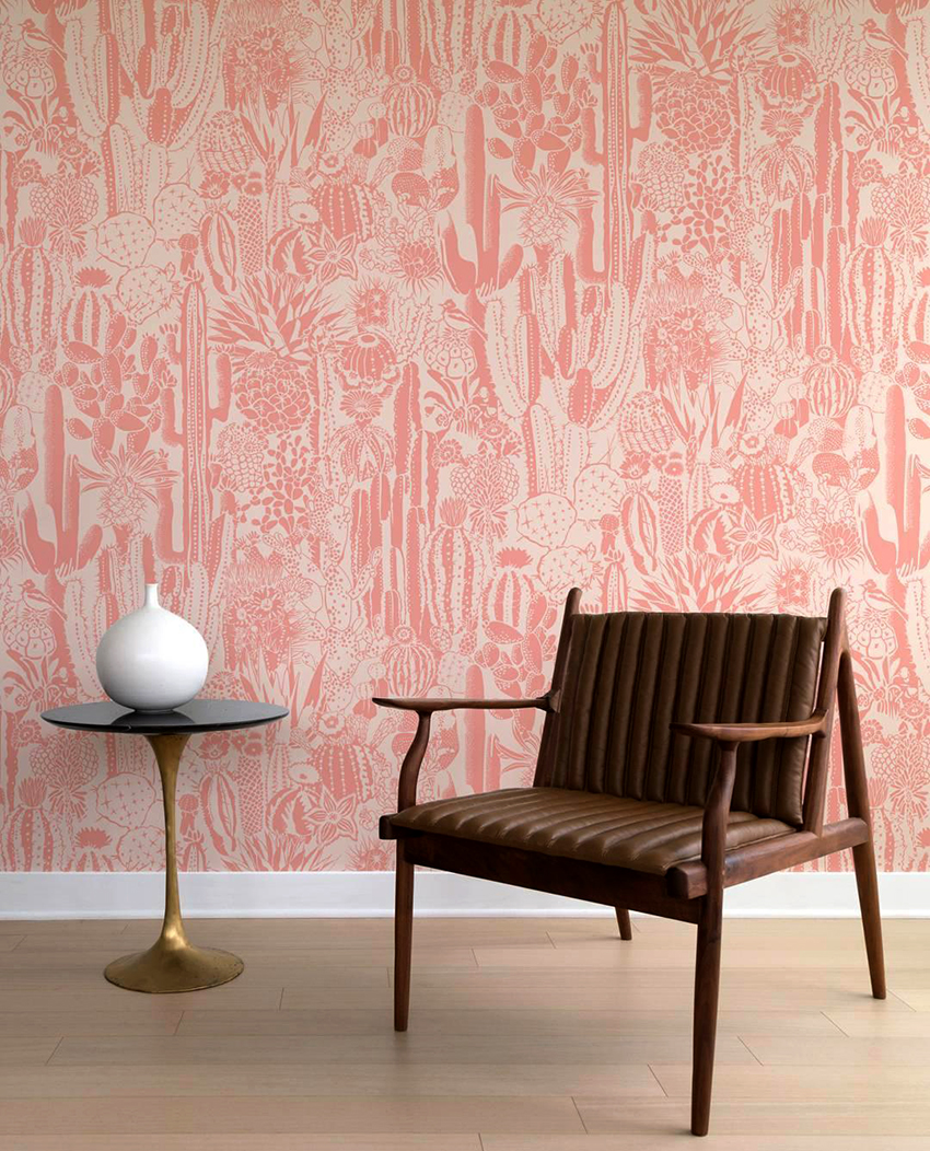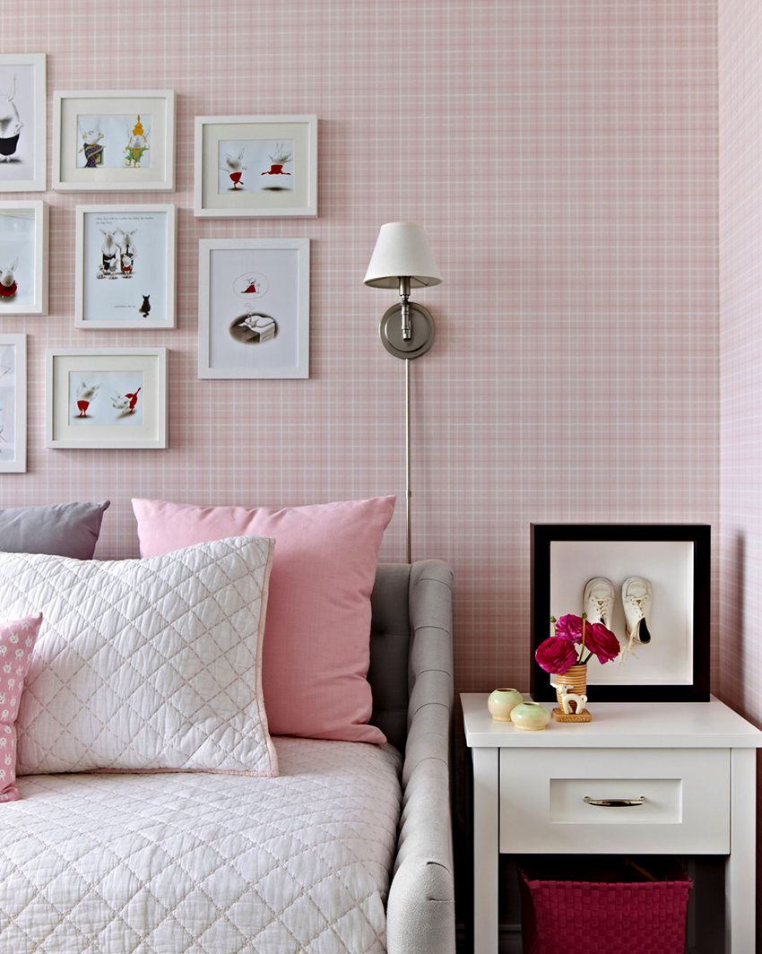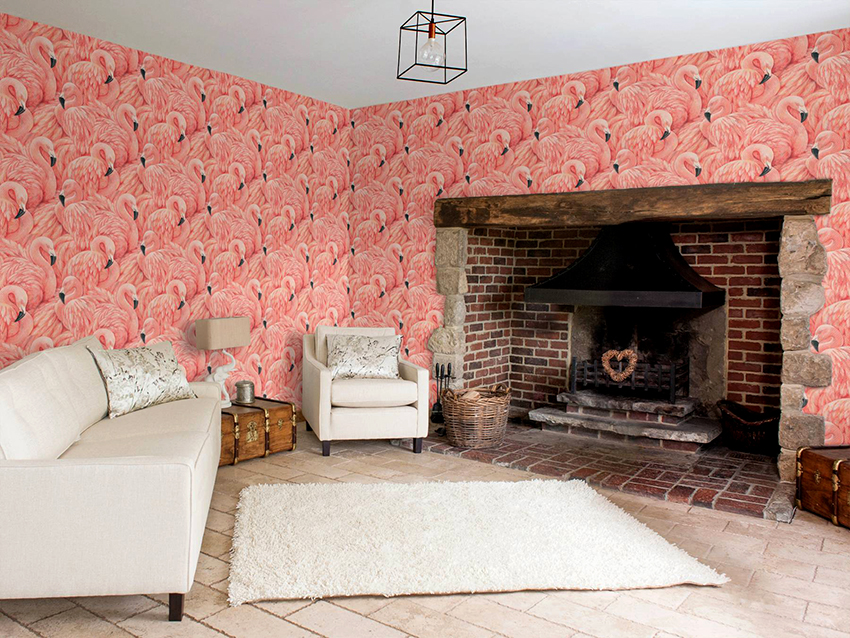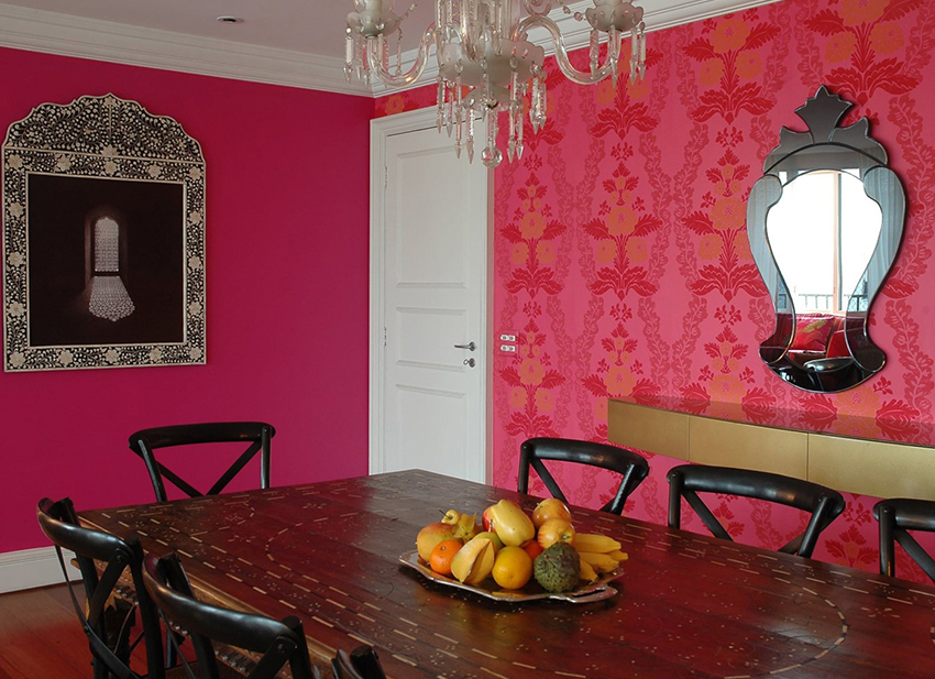 Pink wallpaper combined with other interior elements