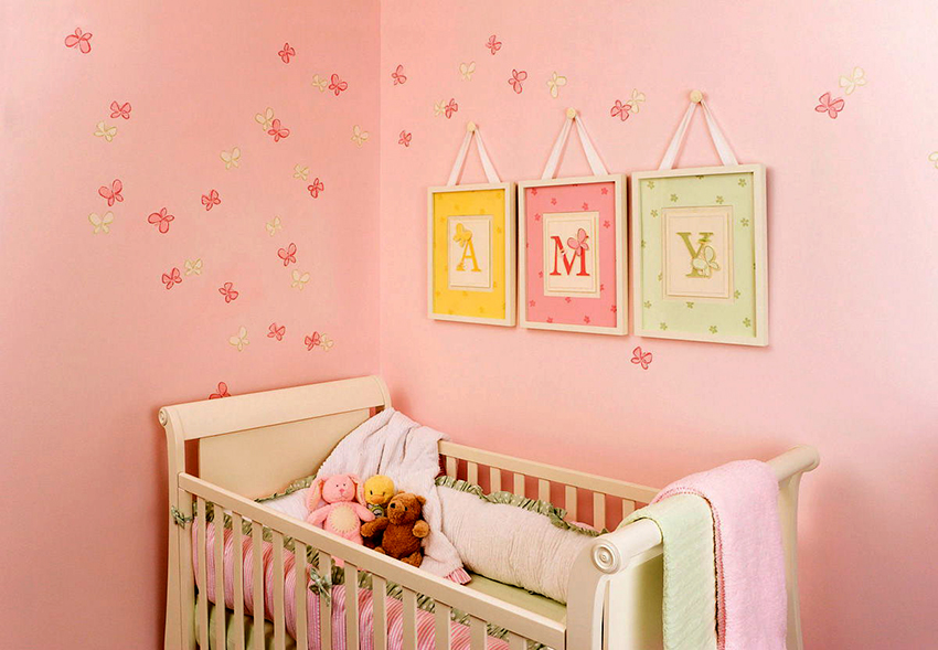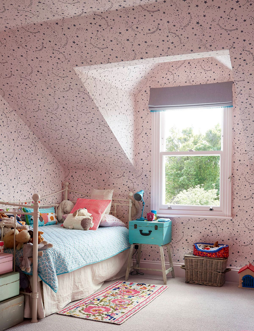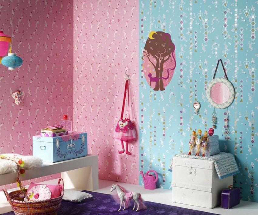 Pink wallpaper is the best fit for decorating a girl's nursery. A good effect will be created by materials with cute patterns in the form of bows, flowers, stars. Such a solution contributes to the creation of a fabulous atmosphere in which the baby will grow up cheerful and calm.