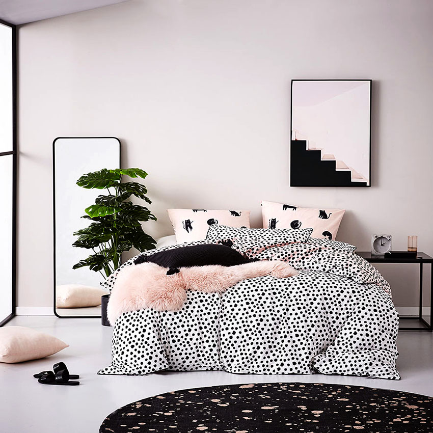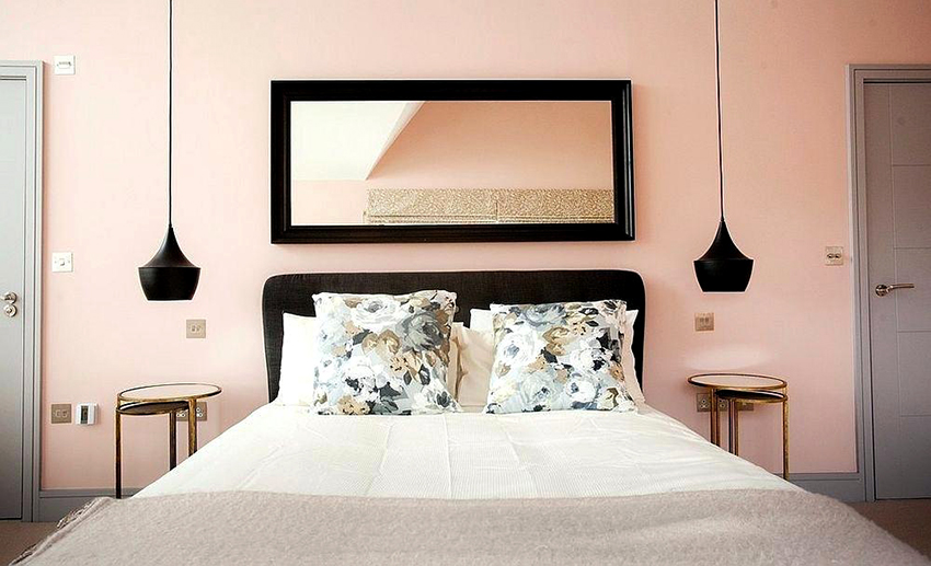 A good option is a combination of pink walls and gray monochromatic or large-patterned curtains that muffle the rich interior, making it pastel and calm. This is the perfect combination for a gray-pink bedroom.