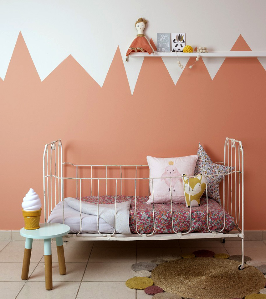 The opposite effect, contributing to a calm environment, can be obtained by using a soft candy pink and a muted orange hue. This combination looks feminine and romantic.