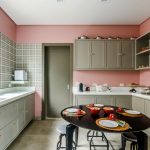 In a pink kitchen, light kitchen sets in white, blue and light brown look best. Textile and decorative elements of fruit and berry color: apricot, apple and strawberry will complement the general mood. Photos of pink kitchens clearly demonstrate a different approach to interior design.