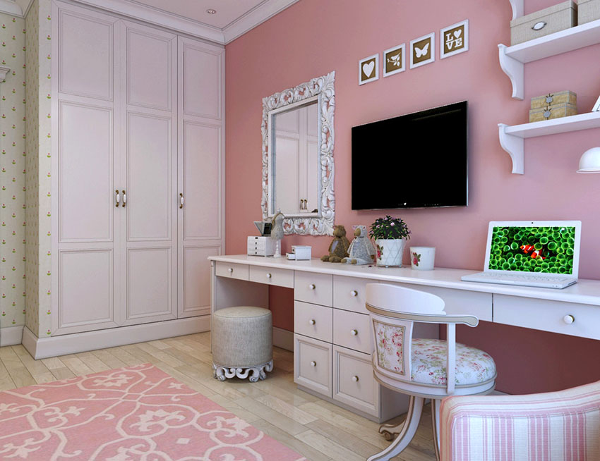 The light pink color is ideal for decorating a girl's nursery, having a beneficial effect on her psychological state. For a matured young lady, a pale pink color will be the best solution. He personifies femininity and romanticism. This design will instill a sense of taste in the young lady.