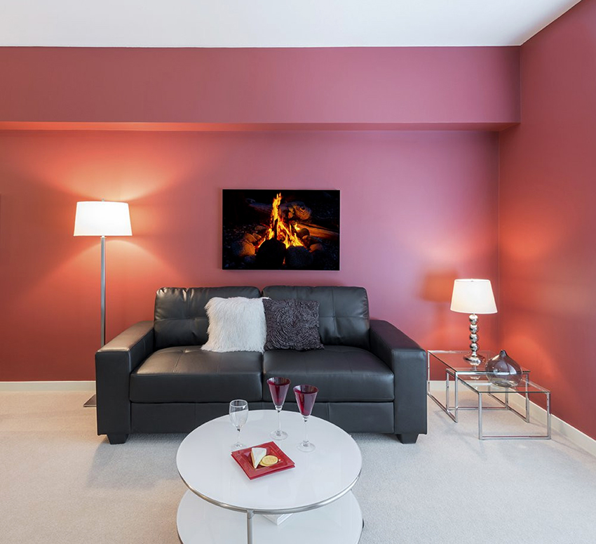 Saturated or pale pink background in rooms for different purposes