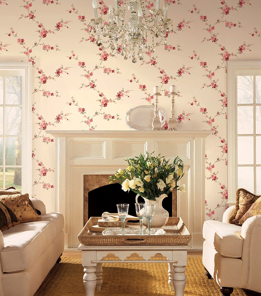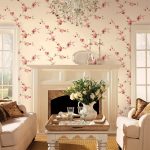 Rustic country and Provence trends will be best embodied in pink floral wallpaper. Such a wall covering is able to create the effect of an indoor garden, bringing its owners as close as possible to nature. The ideal solution in this case would be a photo wallpaper or 3D wallpaper. Pink roses and orchids will harmoniously fit into the living room interior.