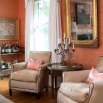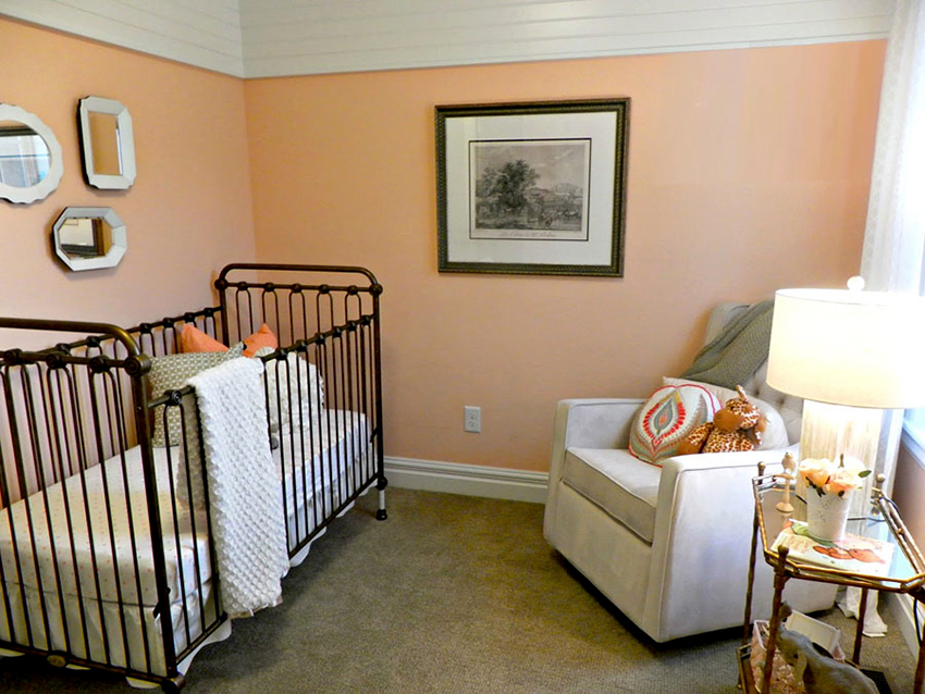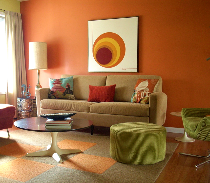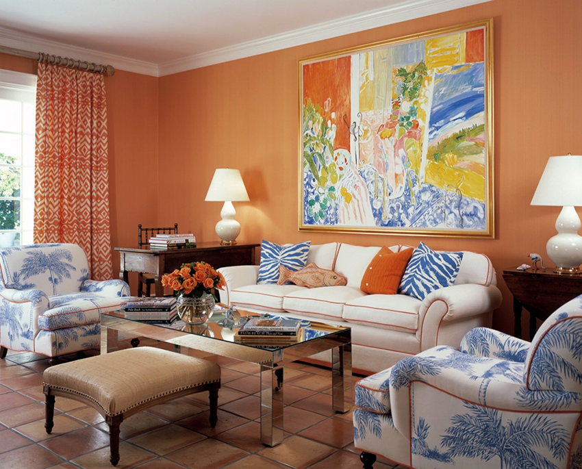 To create a luxurious and playful environment, the interior can be shaded with a rich orange. This combination looks most advantageous in north-facing rooms with low illumination and in spacious rooms. When decorating a small room, it is better to give preference to a peach or coffee-pink palette.