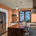 The peach color is used in both classic and ultra-modern interior styles. To implement country and Provence directions, it should be supplemented with floral motifs and light pieces of furniture made from natural materials. The saturation and intensity of the peach shade softens the severity of a minimalist interior or high-tech style.