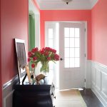 Pink wall coverings with a geometric pattern look original. For a cozy and comfortable hall, the Burberry cage is the best option. A thin graceful strip will fit perfectly into the interior of a small corridor.