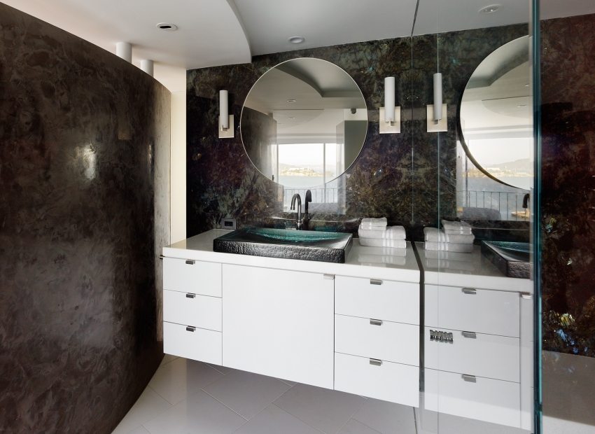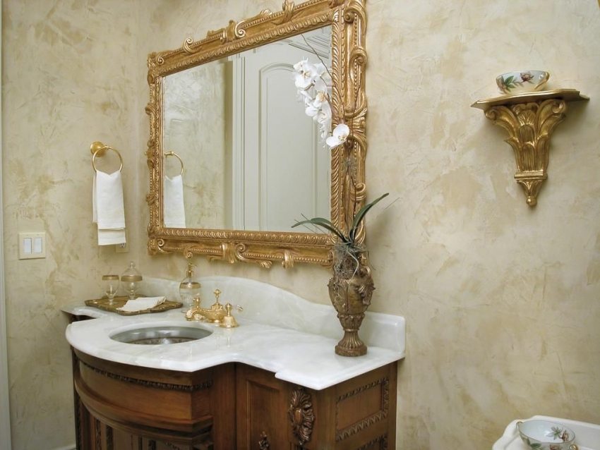 In order not to create unnecessary crowding and unnecessary severity of the situation, it is better to give preference to simpler solutions. Especially when it comes to a small bathroom. The relief coating will make a spacious bathroom more comfortable, but a small one, on the contrary, will make it cramped and oppressive. Therefore, on a modest area, smooth white Venetian plaster will look better. Photos of bathroom decoration in this style are widely presented on sites specializing in apartment renovations.