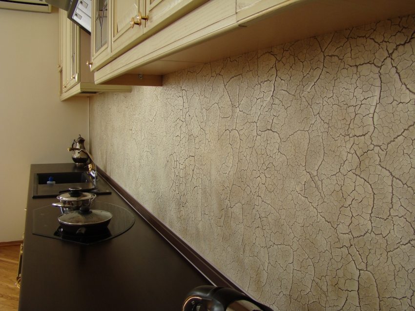 Craquelure - a coating made "antique". Fits perfectly into many interiors, including modern ones. To achieve the desired effect, a layer of special varnish is applied on top, which is used as a topcoat. This varnish usually dries more slowly, due to which it "pulls" the plaster, giving it a specific appearance. Without at all deteriorating the operational characteristics, this option allows you to give the surface sophistication and expensive shine.