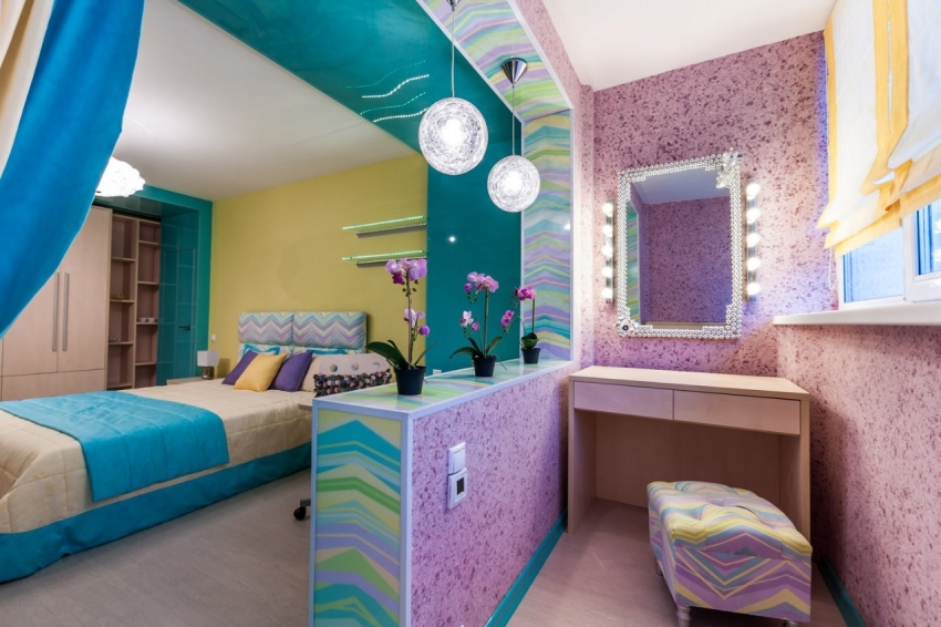 With the help of a basic mixture of liquid wallpaper and several colors, you can decorate the interior in different colors