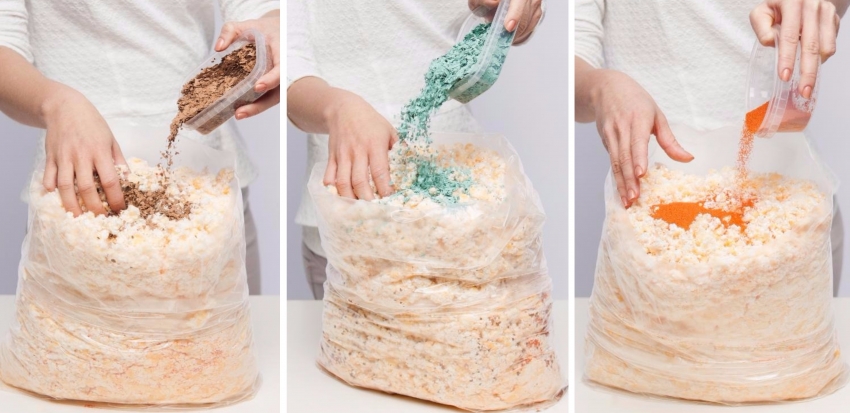Note! Each pack of liquid wallpaper is kneaded separately. It is not advisable to pour several bags of dry material into one container at once. In the case of adding color, you should carefully monitor the ratio of the coloring composition, as well as other decorative components and the amount of wallpaper.