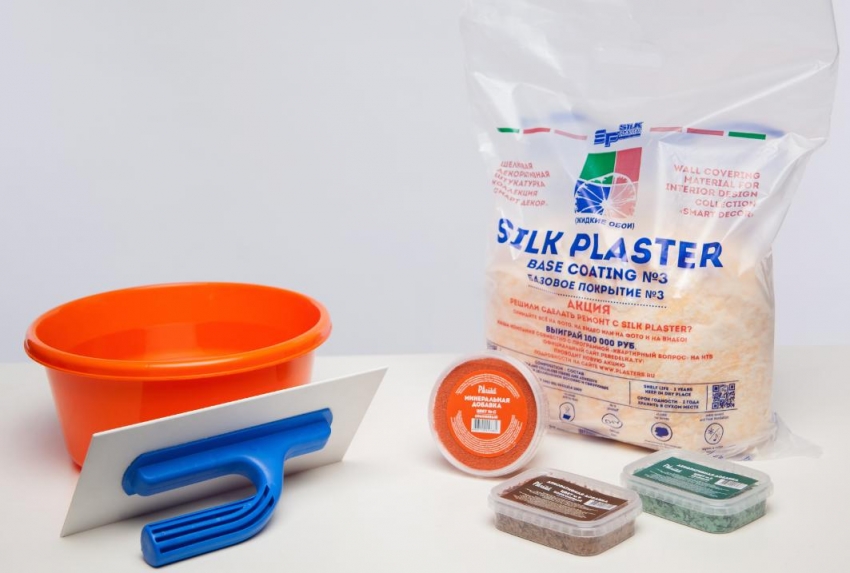 The application of liquid wallpaper to the entire wall should be done from one batch, which guarantees uniformity of the texture and color of the coating