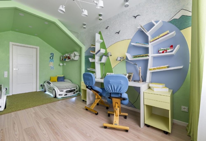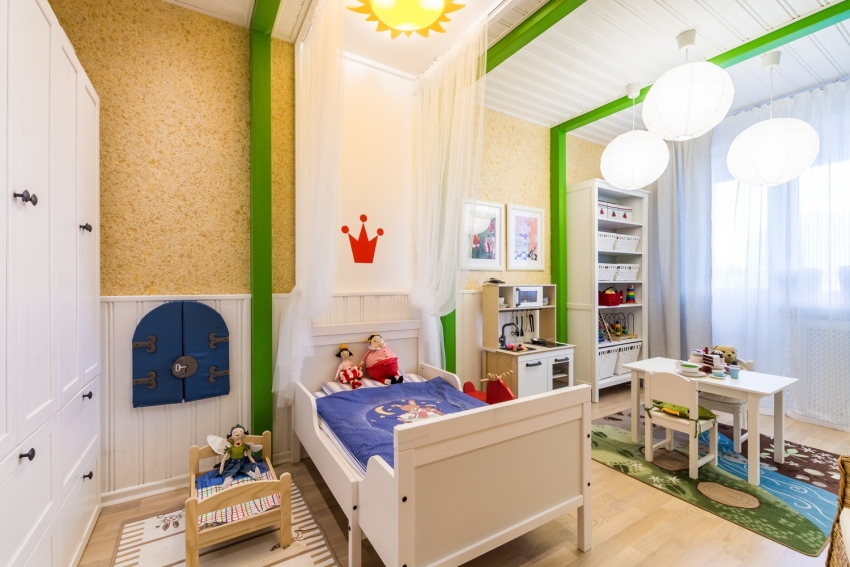 With the help of anti-stencil and liquid wallpaper, you can creatively decorate the interior of a children's room