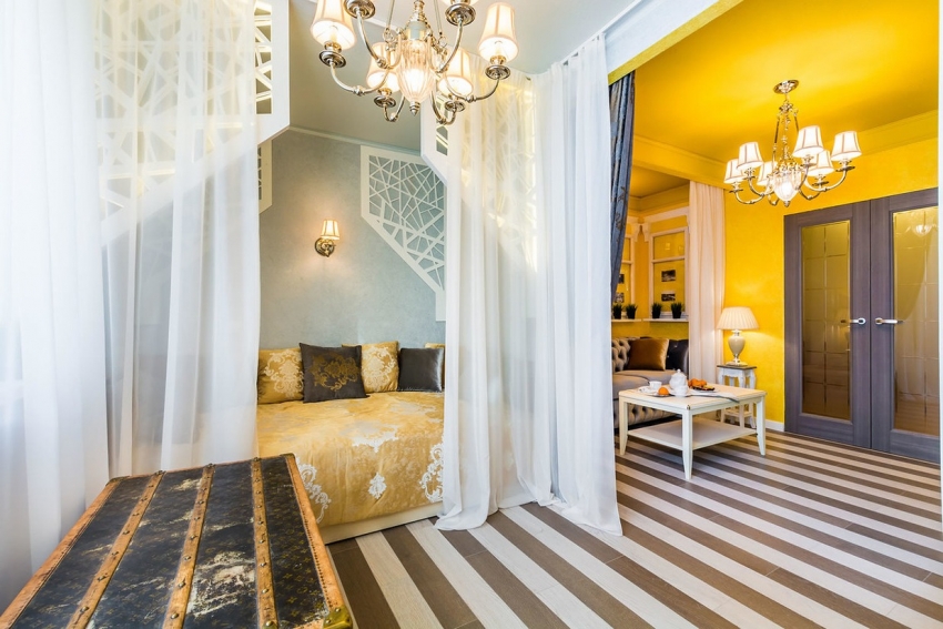 To decorate the bedroom with liquid wallpaper, you can add thin threads of gold or silver colors to the drawing. The result is a sophisticated and refined finish. In the living room, experts recommend using a material consisting of natural silk. Thanks to this, it will be possible to reliably imitate the fabric of textile wallpaper.