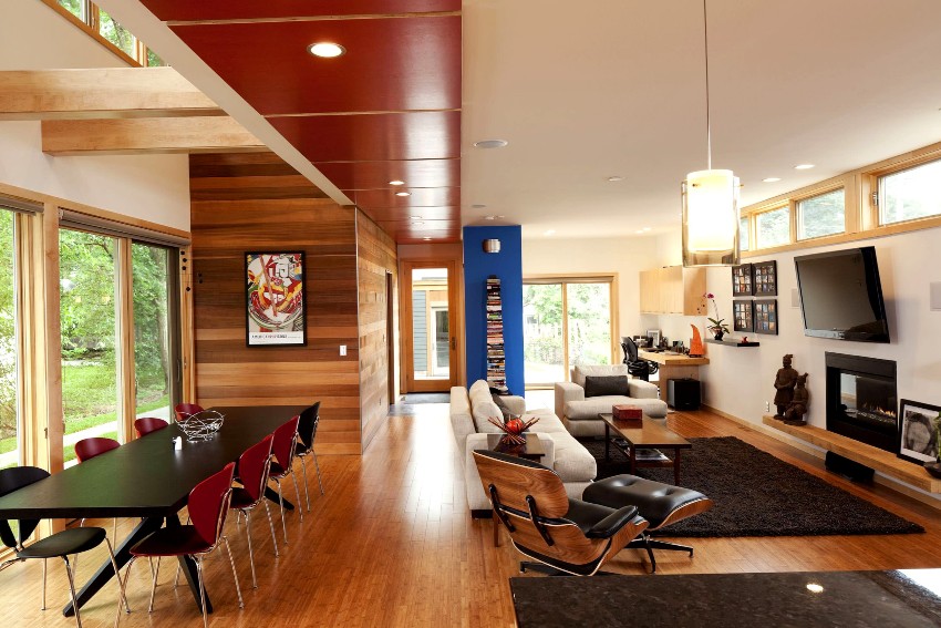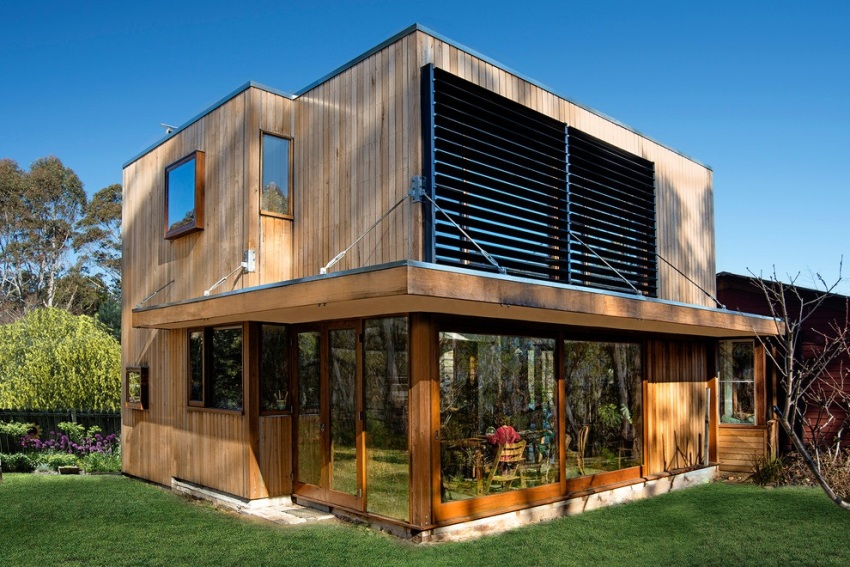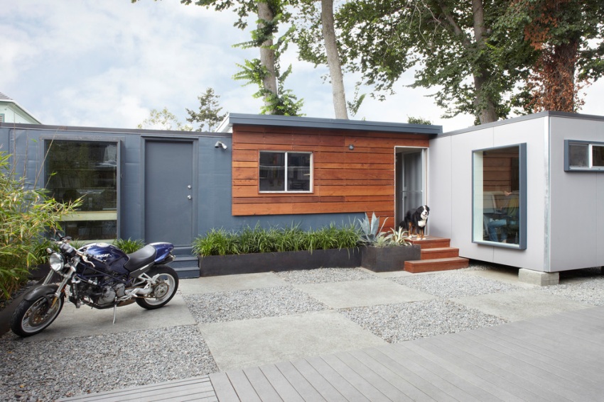To create a warm and comfortable environment, it is advisable to use wood paneling as interior cladding. Even the simplest design can be turned into a great place to stay and live by experimenting with colors and materials. Such a house will perfectly fit into the surrounding landscape if you break flower beds around it. Daring designers can try to organize a flower garden right on the roof, using cacti and other light-loving plants for this purpose.