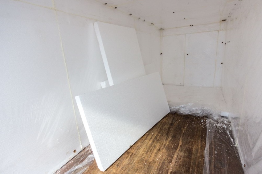 To fix the insulation, you can use plastic pins or a special adhesive. Plastic elements are screwed into the walls of the cargo container in advance. A polyethylene film is laid on top of the insulation. Then a decorative layer is installed, for example, chipboard or lining.