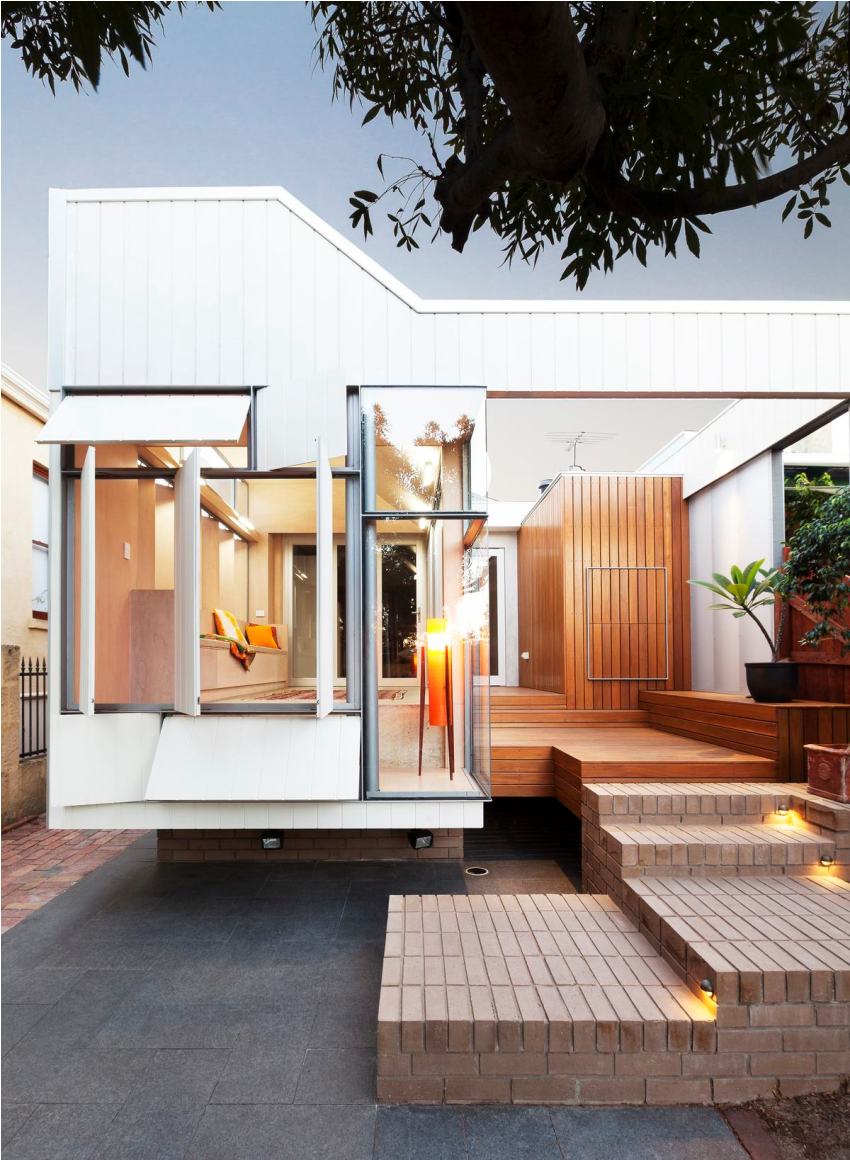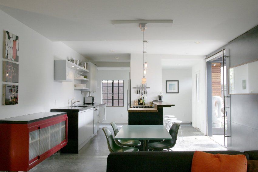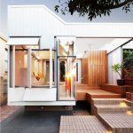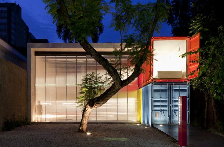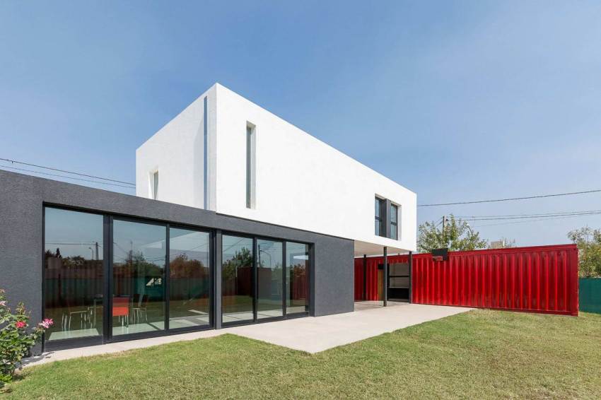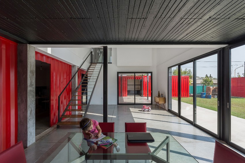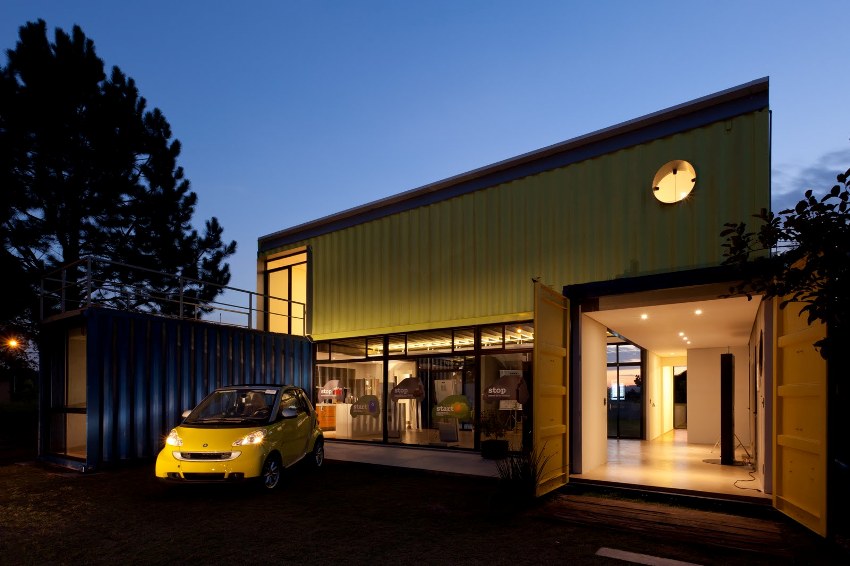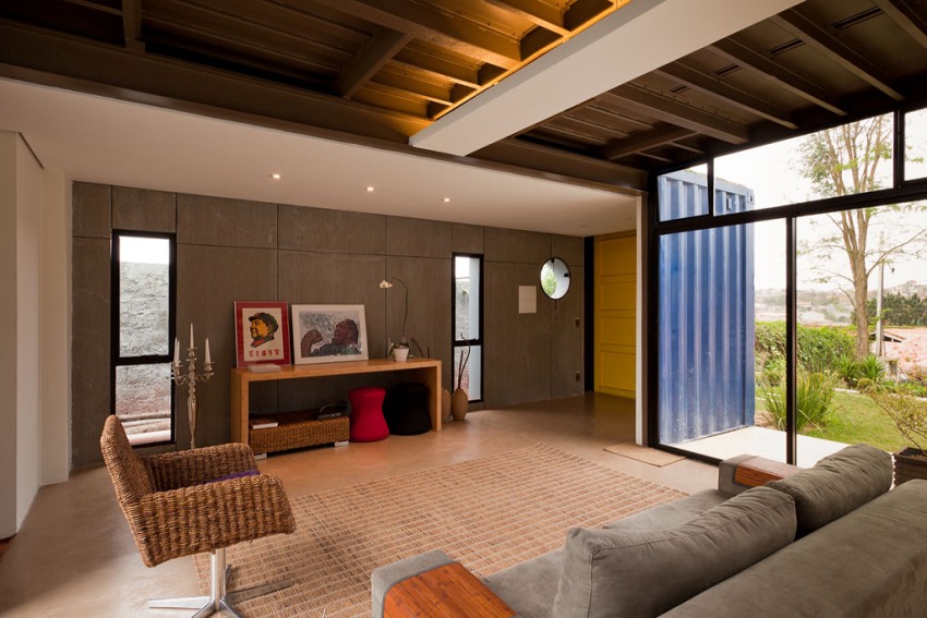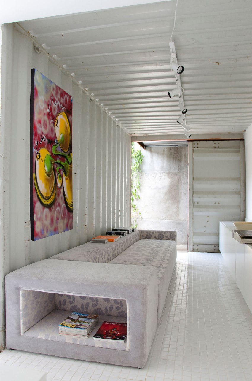 No less impressive are the photos of a 2-storey building designed by the architect Marcio Kogan. This project makes it possible to create a residential building on the basis of industrial elements combined into one whole in a limited period of time. At the same time, to give the house the required area, the containers are stacked on top of each other, and then the building is expanded. The result is a structure with a large interior space. In the widest part, you can equip a comfortable living room.