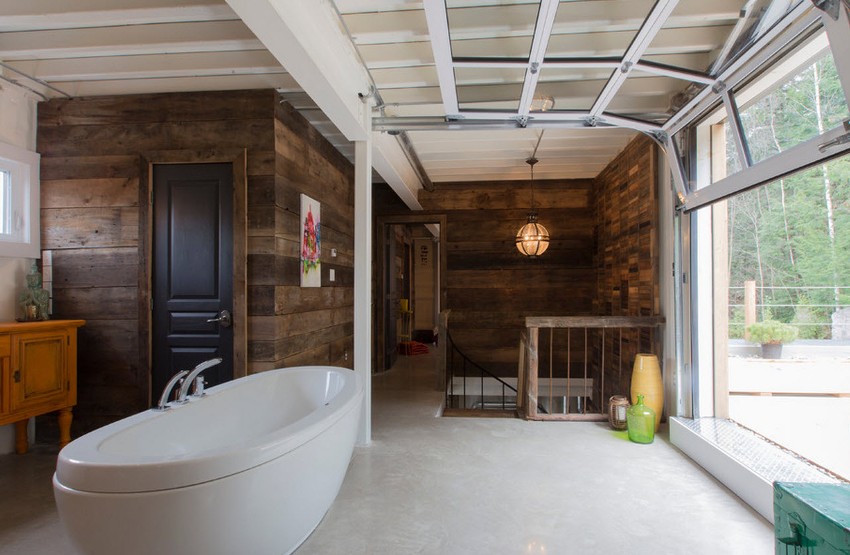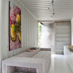 It is advisable to avoid gloomy and dark colors. White and pastel shades will visually increase the space inside the containers. Mirrors and glossy surfaces create a similar effect. Container buildings fit perfectly with panoramic windows. This type of glazing will give the structure a modern look.
