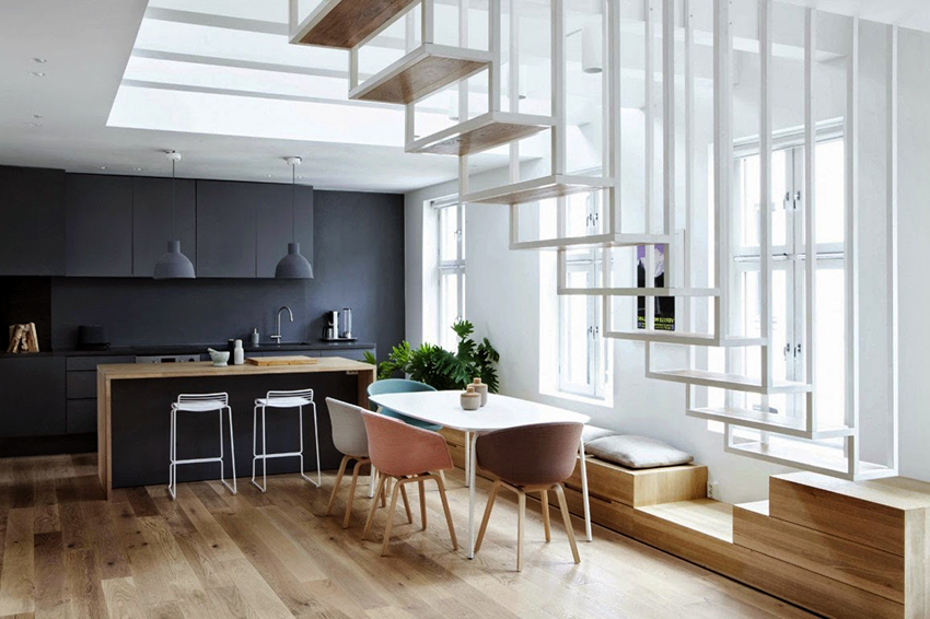 Before deciding on the type of stairs, it is worth looking at photos of Scandinavian houses of one and a half and two floors, where this structure is already presented as part of the interior. This visualization method will help to avoid mistakes.