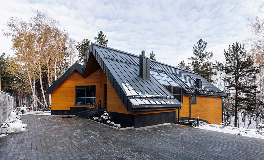 - Steep gable roof. This form of the roof promotes the creeping of precipitation, prevents the need to clean it off. In Scandinavian houses, attic spaces are designed as living rooms.
