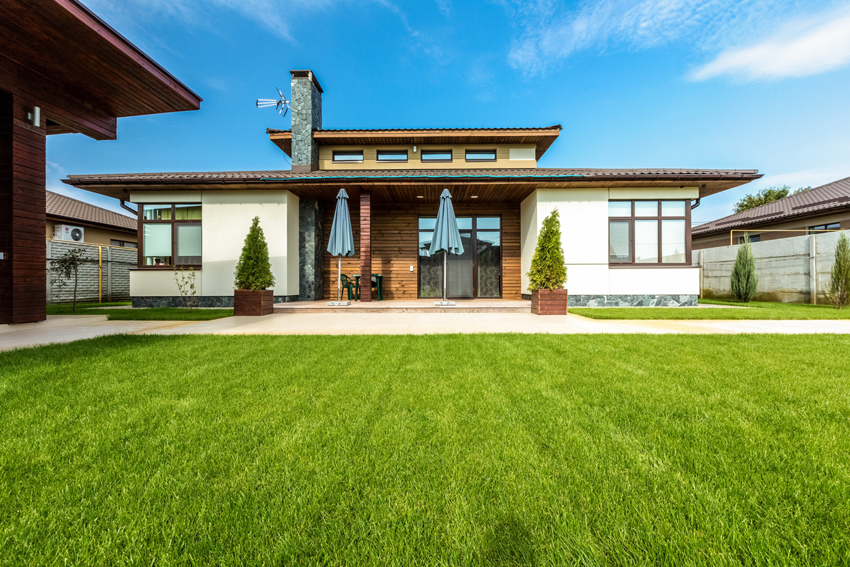 The facade is finished by plastering or cladding with artificial material. The roof is flat, pitched, often with a large overhang on one side, under which a veranda is made out.If the house is two-story, an attic must be present, and the layout itself is open or multi-level.