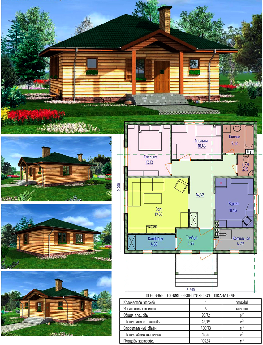 Note! For the construction of a beautiful one-story house made of laminated veneer lumber, it is imperative to choose a practical and well-designed project, because the comfort of living will subsequently depend on this. You can develop it yourself or use the services of a specialized company.